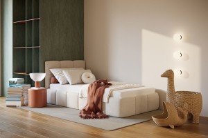 Bei jedem Bett kannst du folgende Optionen konfigurieren: Größe, Farbe, Matratze und vieles mehr.