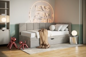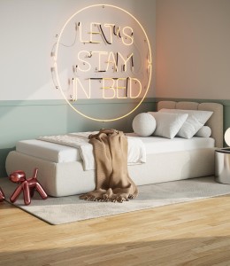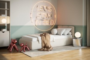 Bei jedem Bett kannst du folgende Optionen konfigurieren: Größe, Farbe, Matratze und vieles mehr.