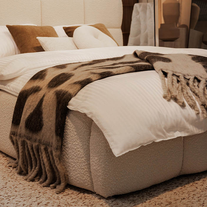 Hier finden Sie alles, was Sie brauchen – ein Bett, einen Lattenrost, eine Matratze, einen Hocker, eine Bettdecke, ein Kissen und viele verschiedene Accessoires, mit denen Sie Ihr Traumschlafzimmer und mehr einrichten können.