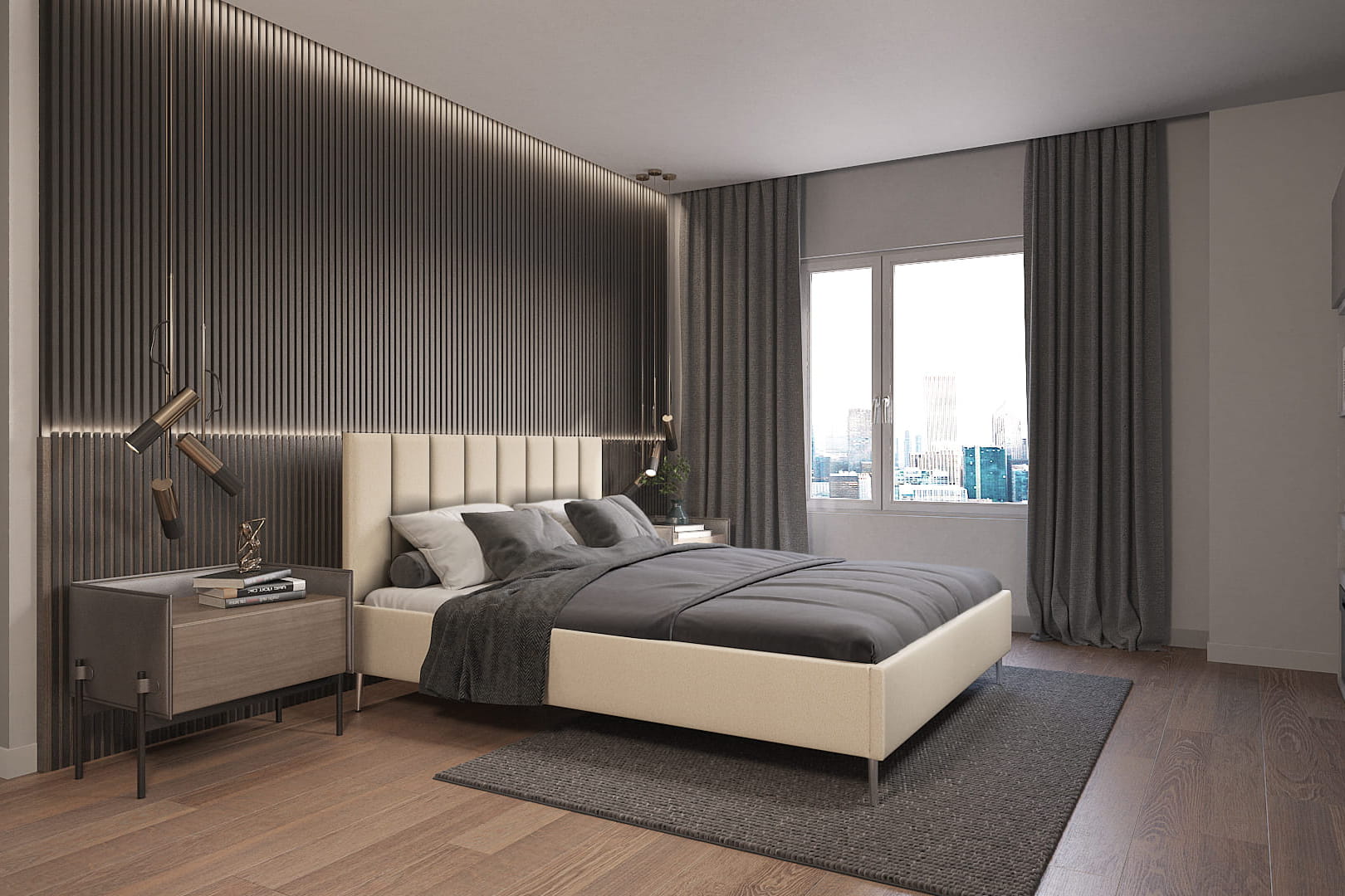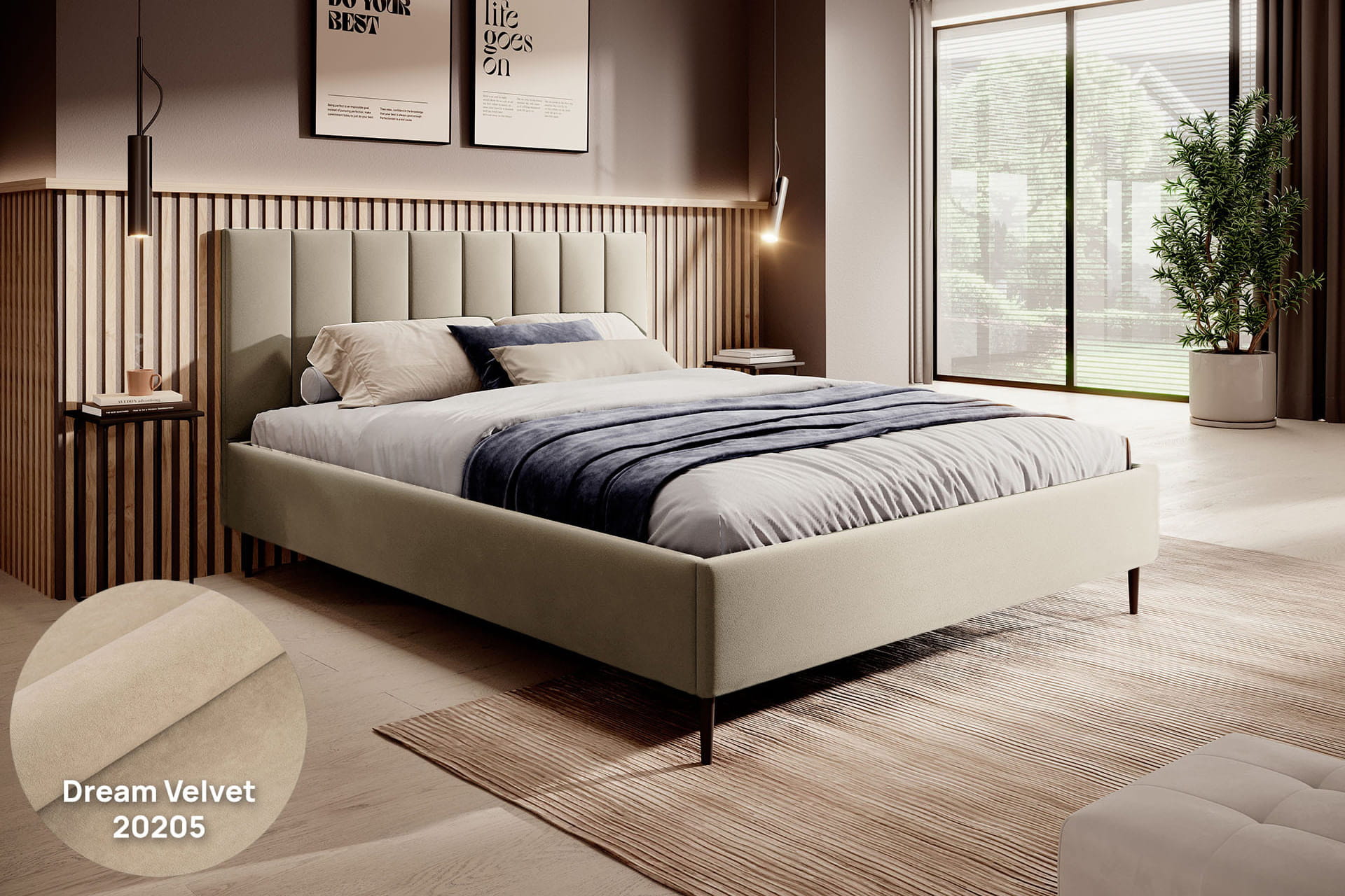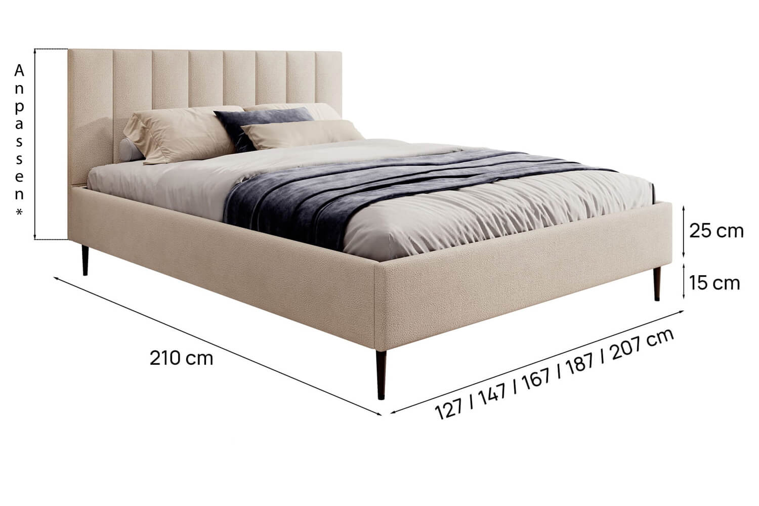 Eleganz und Subtilität vereinen sich im Modell Adele von MyBed und schaffen ein Bett, das mit seinem minimalistischen Design und der besonderen Liebe zum Detail begeistert. Die schlichte, leichte Form, zarte dekorative Beine sowie ein hoher Kopfteil mit vertikalen Nahtlinien verleihen jedem Schlafzimmer einen Hauch von Luxus. Ein robustes Gestell und eine sorgfältige Verarbeitung über die gesamte Oberfläche garantieren Komfort und Langlebigkeit über Jahre hinweg. Dank der schlanken Form und der zeitlosen Ästhetik fügt sich das Modell Adele sowohl in klassische als auch in moderne Arrangements ein und bringt Harmonie und Eleganz in den Raum.