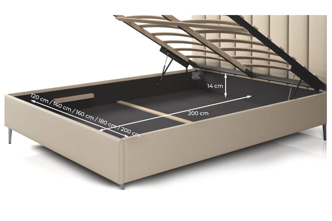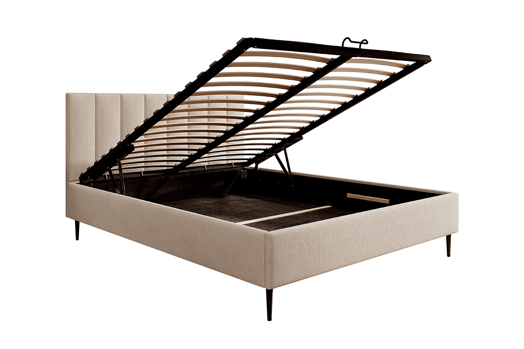 Der funktionale Bettwäschebehälter in unseren Betten bietet zusätzlichen Stauraum. Ideal zur Aufbewahrung von Bettwäsche, Kissen und anderen Gegenständen hilft er, das Schlafzimmer ordentlich zu halten. Hergestellt aus robusten Materialien, ist er einfach zu bedienen und bietet hohen Komfort.