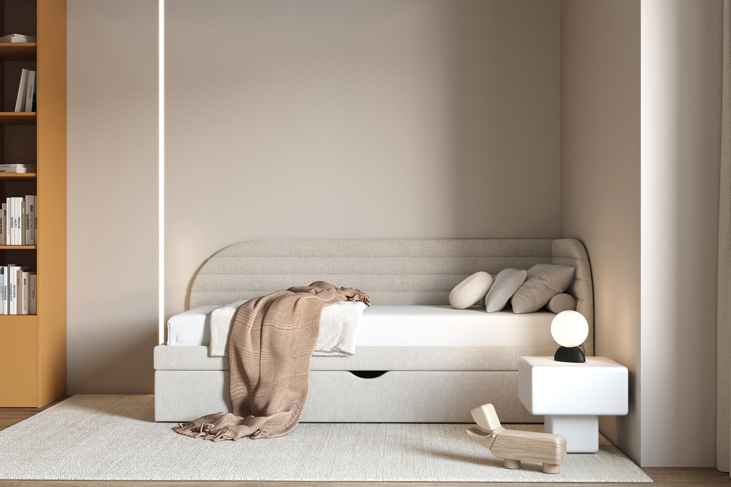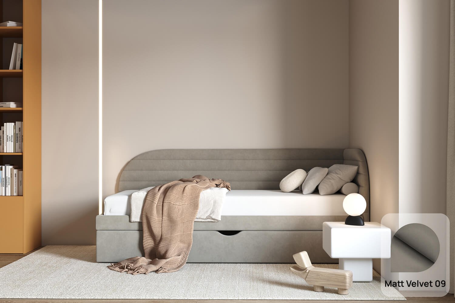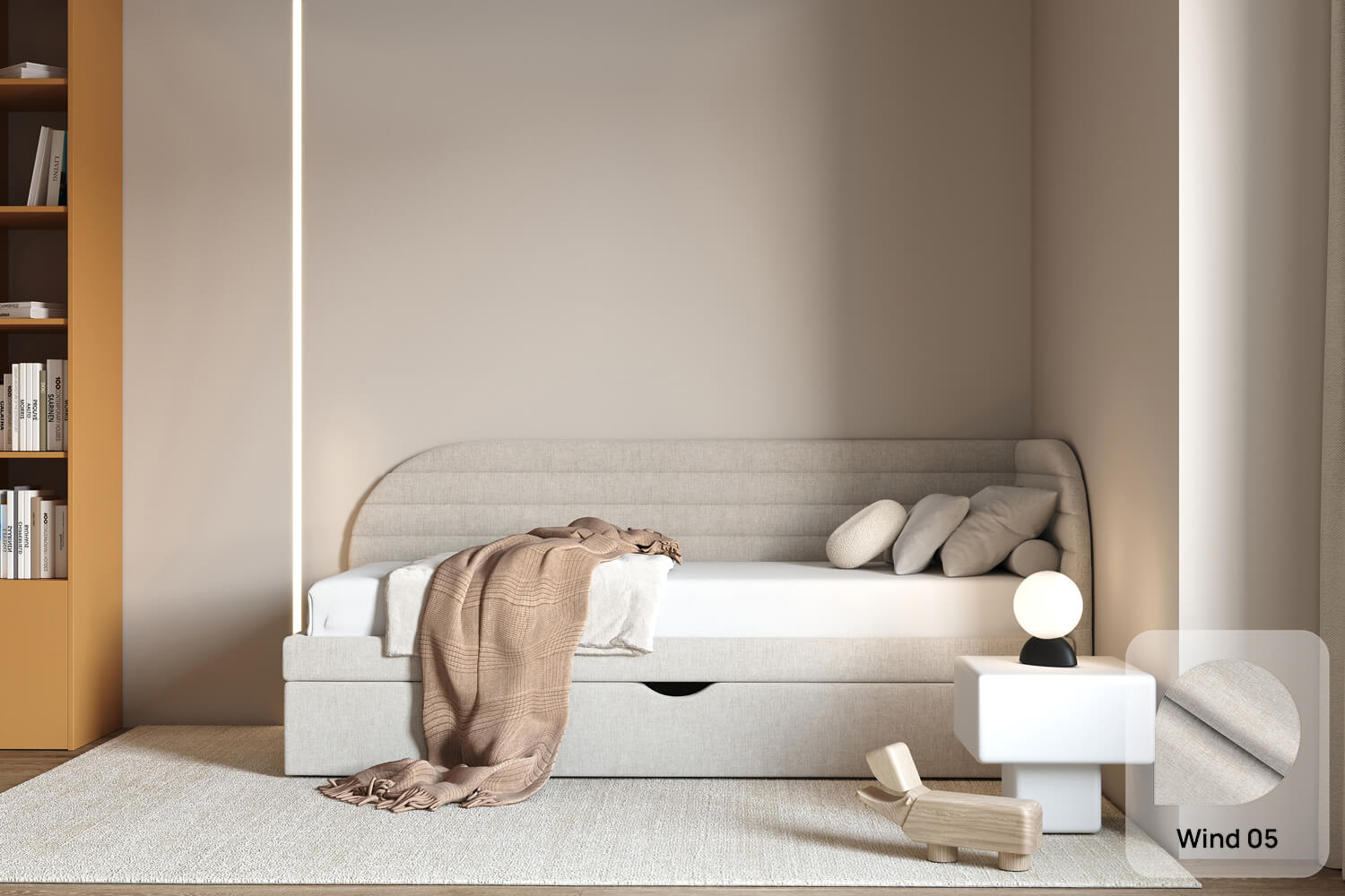 Das Bett Ammo passt perfekt in jede Einrichtung – von modernen bis hin zu klassischen Innenräumen. Sein leichtes Design fügt sich auch in kleinere Räume harmonisch ein.