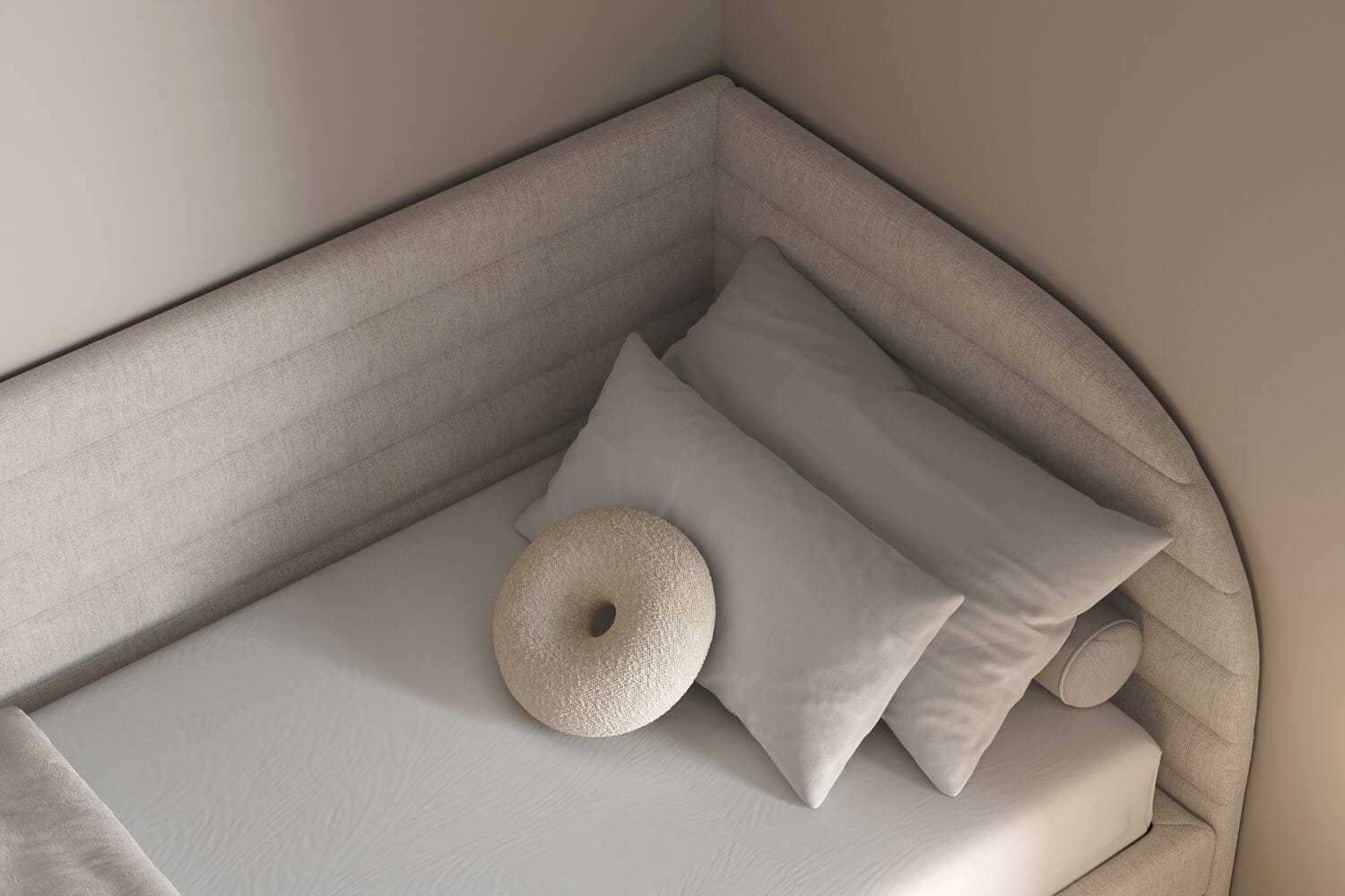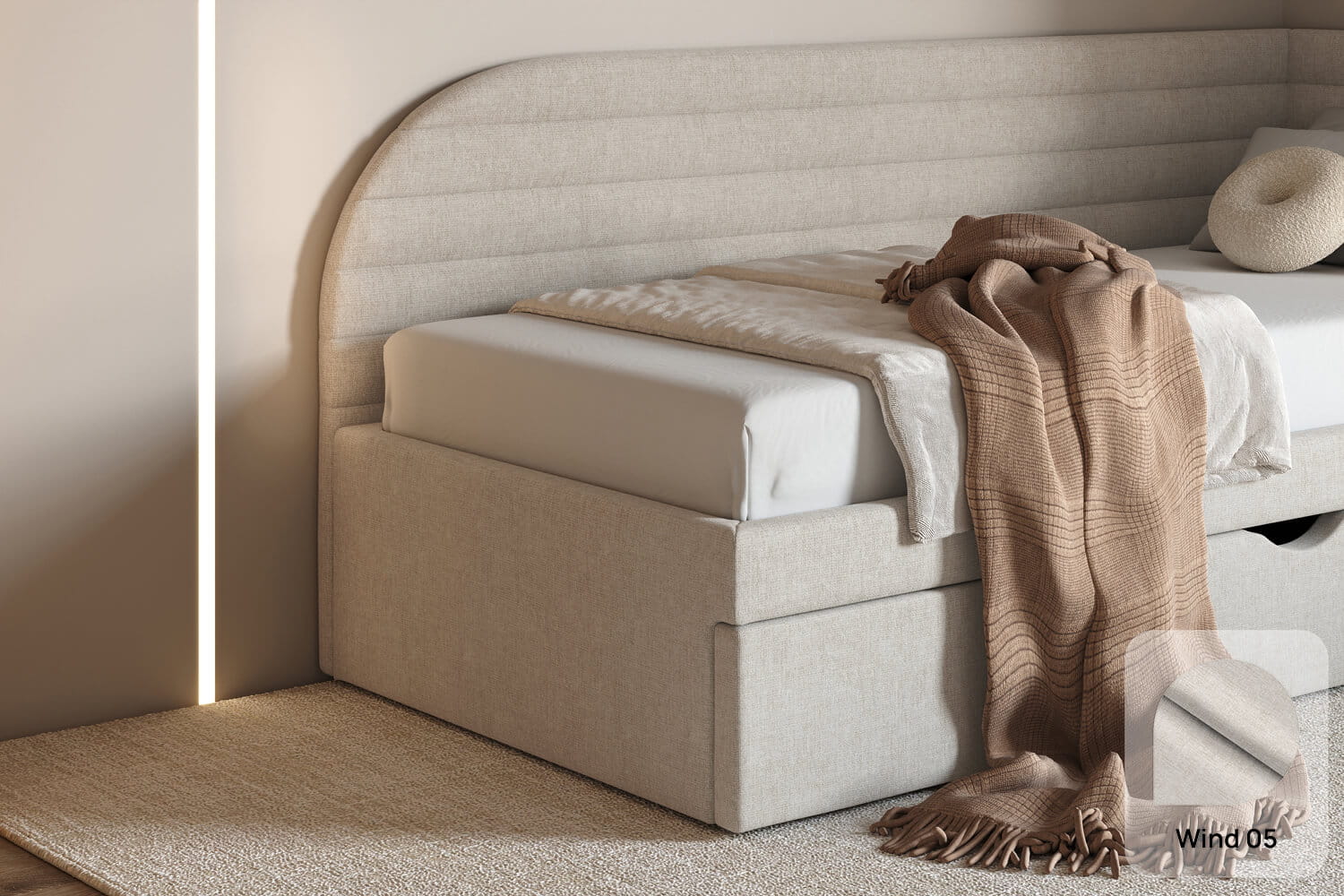 Das einzigartige Design des gepolsterten Bettes Ammo von MyBed wird durch ein markantes Kopfteil geprägt. Seine abgerundeten Ecken verleihen dem Schlafzimmer eine sanfte und gemütliche Note. Darüber hinaus betonen die glatten Seiten der Rahmenkonstruktion den minimalistischen Stil des Bettes und ermöglichen eine einfache Anpassung an verschiedene Raumgestaltungen. Dank der Möglichkeit, es in einer Ecke zu platzieren, nutzt du den Raum in kleineren Zimmern optimal aus und schaffst gleichzeitig eine gemütliche Ecke zur Entspannung. Wähle Ammo und gestalte deinen ganz persönlichen Rückzugsort – genau so, wie du es magst!