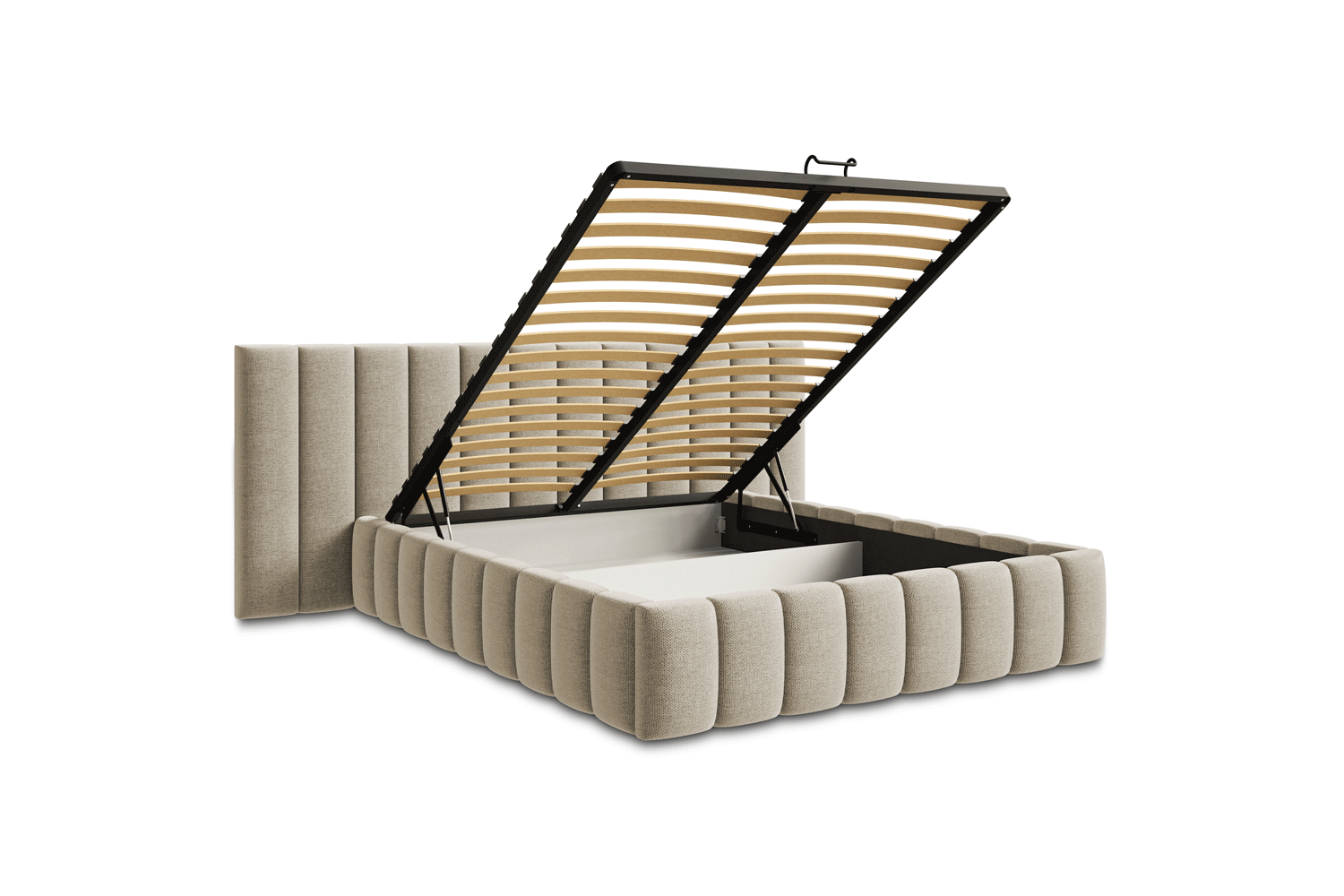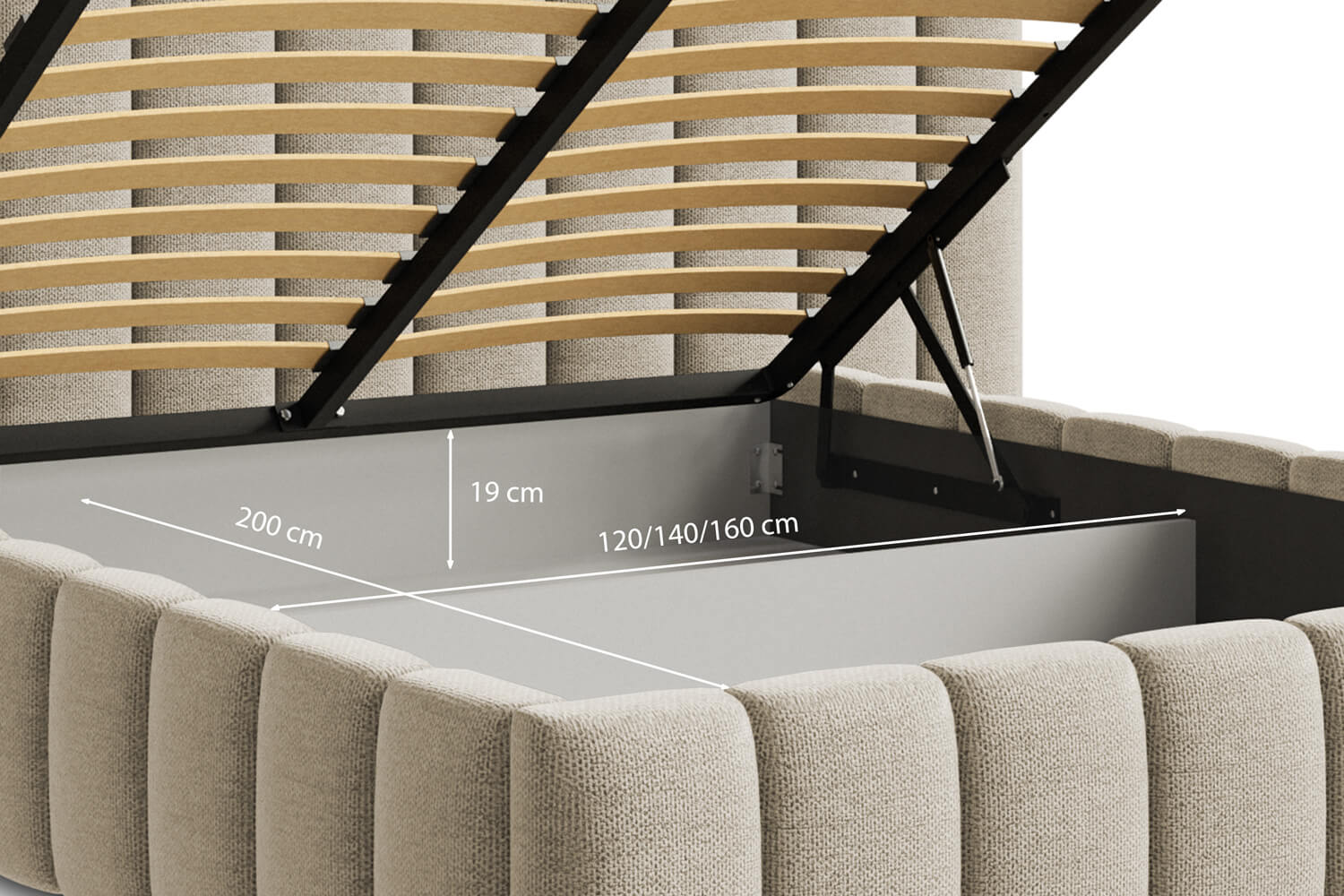 Der funktionale Bettwäschebehälter in unseren Betten bietet zusätzlichen Stauraum. Ideal zur Aufbewahrung von Bettwäsche, Kissen und anderen Gegenständen, hilft er, das Schlafzimmer ordentlich zu halten. Hergestellt aus robusten Materialien, ist er einfach zu bedienen und bietet hohen Komfort.