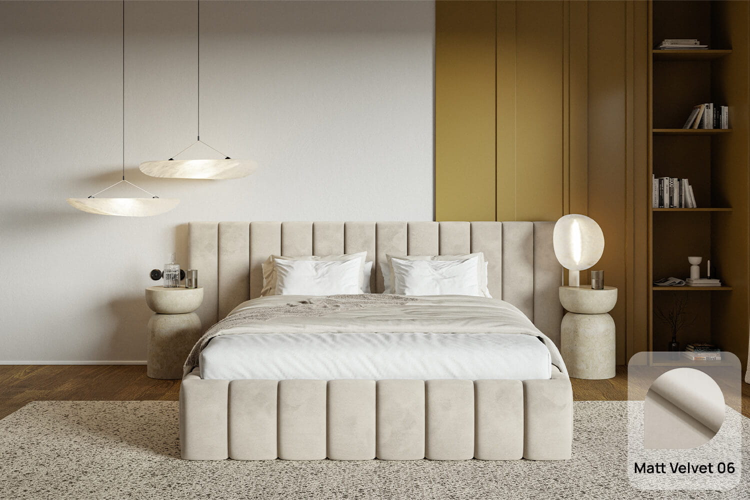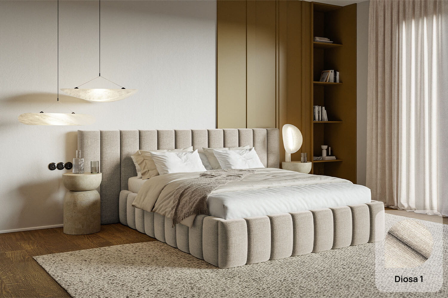 Das Bett Aria fügt sich hervorragend in jede Raumgestaltung ein – von modernen bis zu klassischen Räumen. Das schöne Design zieht Aufmerksamkeit auf sich, ohne das Schlafzimmer zu überfrachten.
