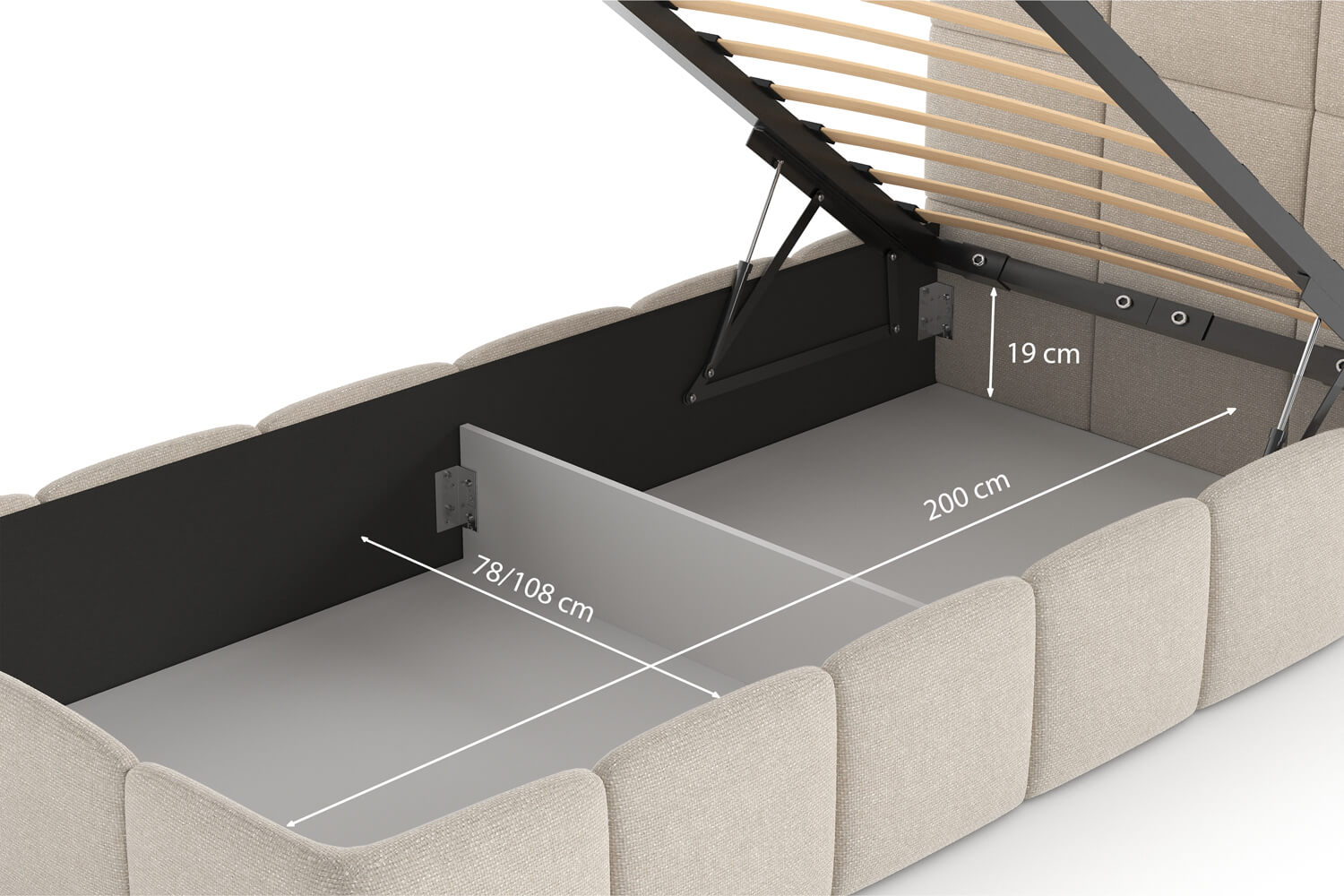 Der praktische Bettkasten unserer Betten bietet zusätzlichen Stauraum. Ideal zur Aufbewahrung von Bettzeug, Kissen und anderen Gegenständen – er hilft, Ordnung im Schlafzimmer zu halten. Hergestellt aus langlebigen Materialien, ist er einfach zu bedienen und sorgt für höchsten Komfort.