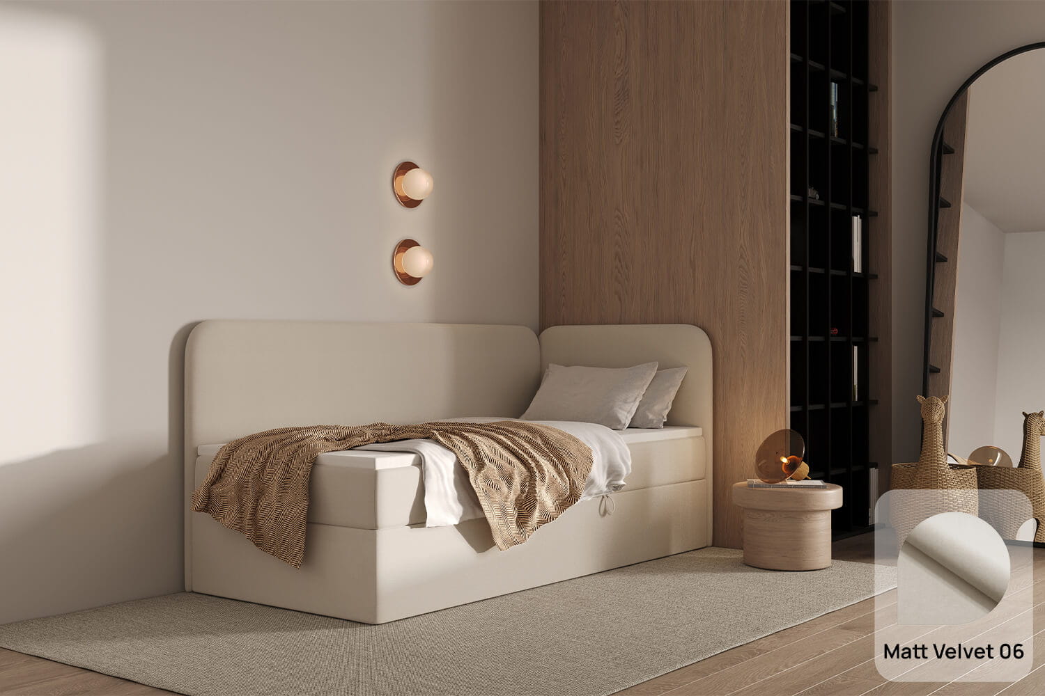 Gestalten Sie Ihr Bett nach Ihren individuellen Bedürfnissen. Wir bieten vollständige Personalisierungsmöglichkeiten – von der Größenwahl über den Polsterstoff bis hin zu zusätzlichen Funktionen wie Bettkasten oder Kopfteil. So können Sie ein Bett entwerfen, das perfekt zu Ihrem Interieur und Lebensstil passt.