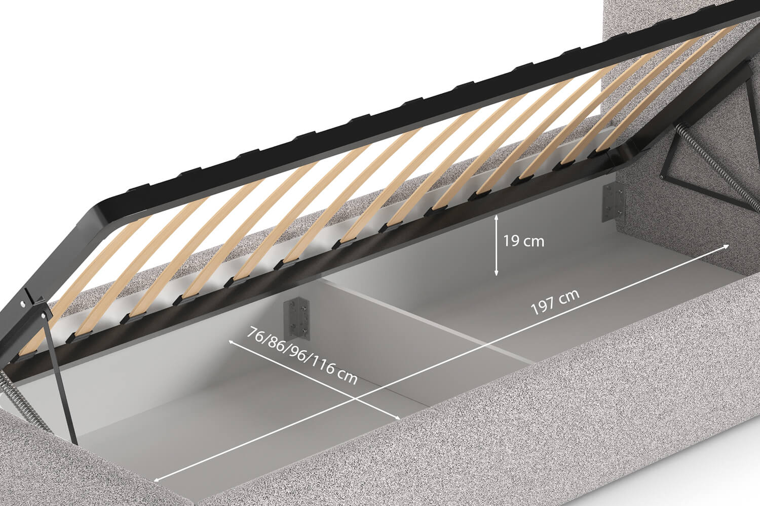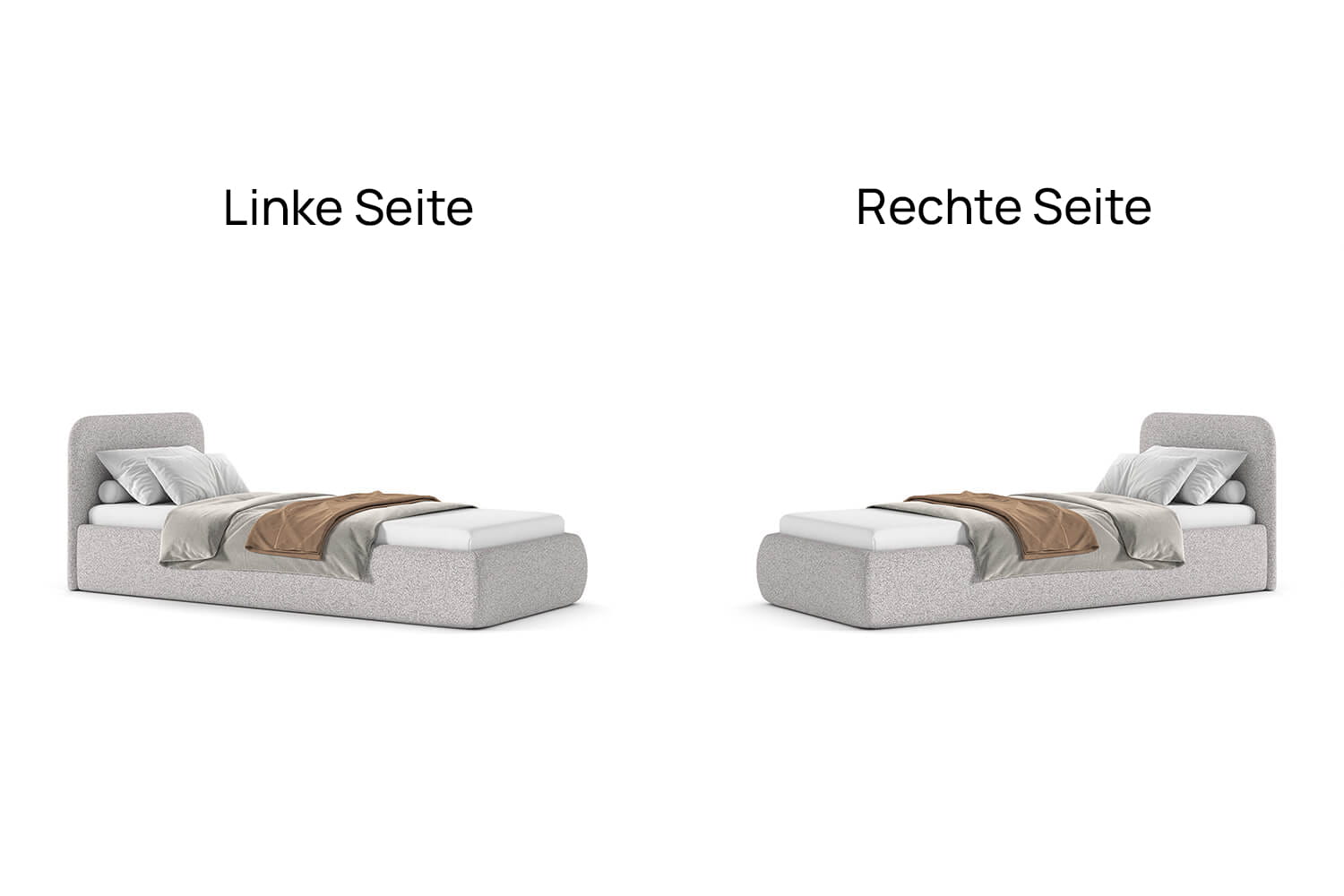 Version mit Bettwäschefach, das von der Seite geöffnet wird