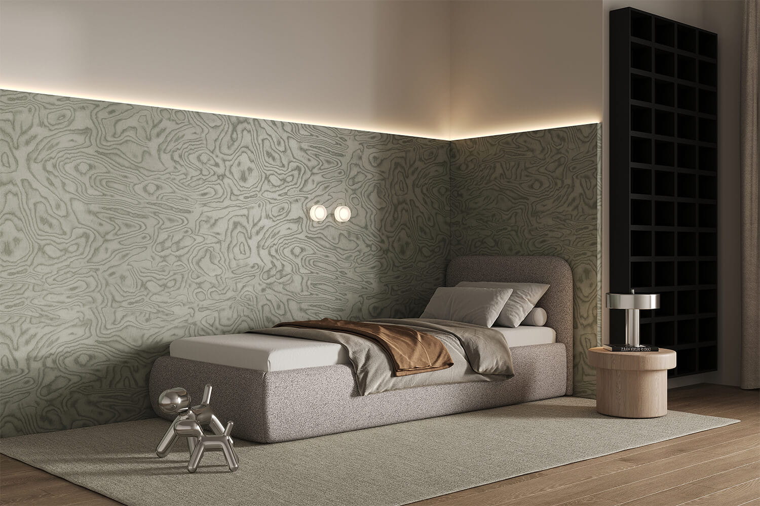Egal, ob du ein elegantes Schlafzimmer oder ein modernes Studio einrichtest – Bao One passt sich ideal an. Eine große Auswahl an Stoffen ermöglicht es, das Bett individuell zu gestalten.