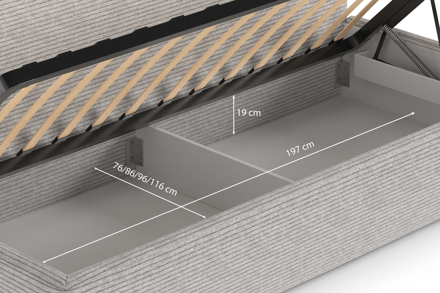 Variante mit Bettkasten – seitlich zu öffnen