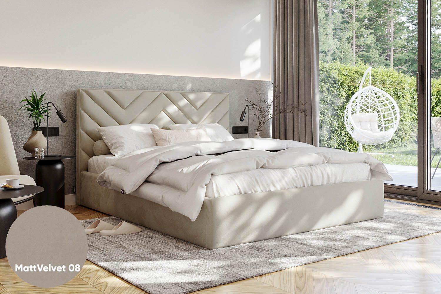 Das gepolsterte Bett Chevron von MyBed ist die Verbindung moderner Ästhetik mit einem einzigartigen Design. Seine glatten Seiten bilden eine elegante und harmonische Linie, die sich perfekt in jedes Schlafzimmer einfügt. Das außergewöhnliche Kopfteil, verziert mit Chevron-Nähten, zieht alle Blicke auf sich und verleiht dem Bett einen originellen Charakter. Der weiche und flauschige Rahmen erfreut nicht nur das Auge, sondern bietet vor allem außergewöhnlichen Schlafkomfort. Das Bett Chevron ist die ideale Wahl für all jene, die hohen Schlafkomfort in Kombination mit einzigartigem Design schätzen. Entdecke eine neue Dimension der Entspannung!