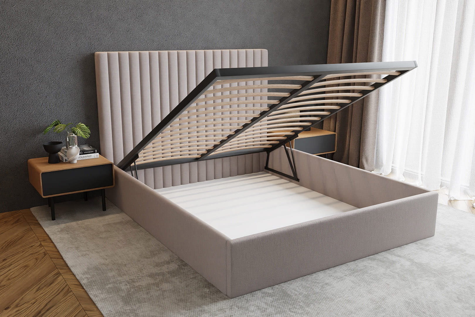 Der funktionale Bettkasten in unseren Betten bietet zusätzlichen Stauraum. Ideal zur Aufbewahrung von Bettwäsche, Kissen und anderen Gegenständen, hilft er, Ordnung im Schlafzimmer zu bewahren. Hergestellt aus robusten Materialien, ist er einfach zu bedienen und bietet hohen Komfort.