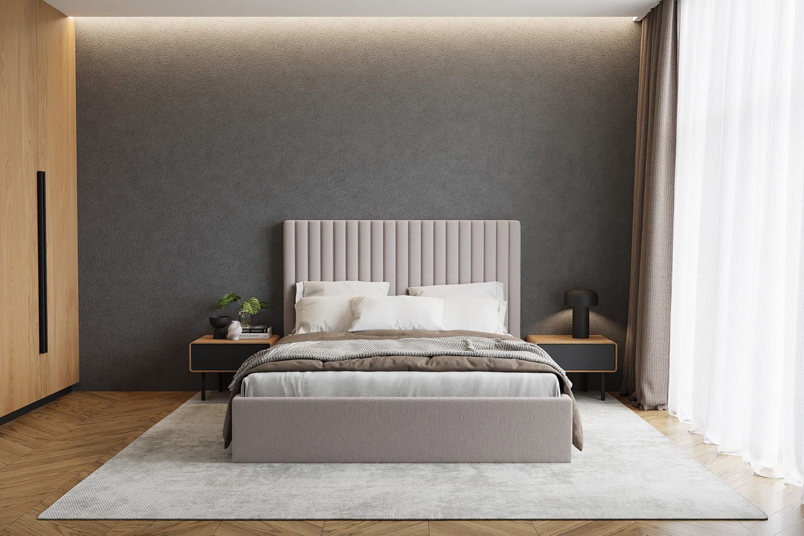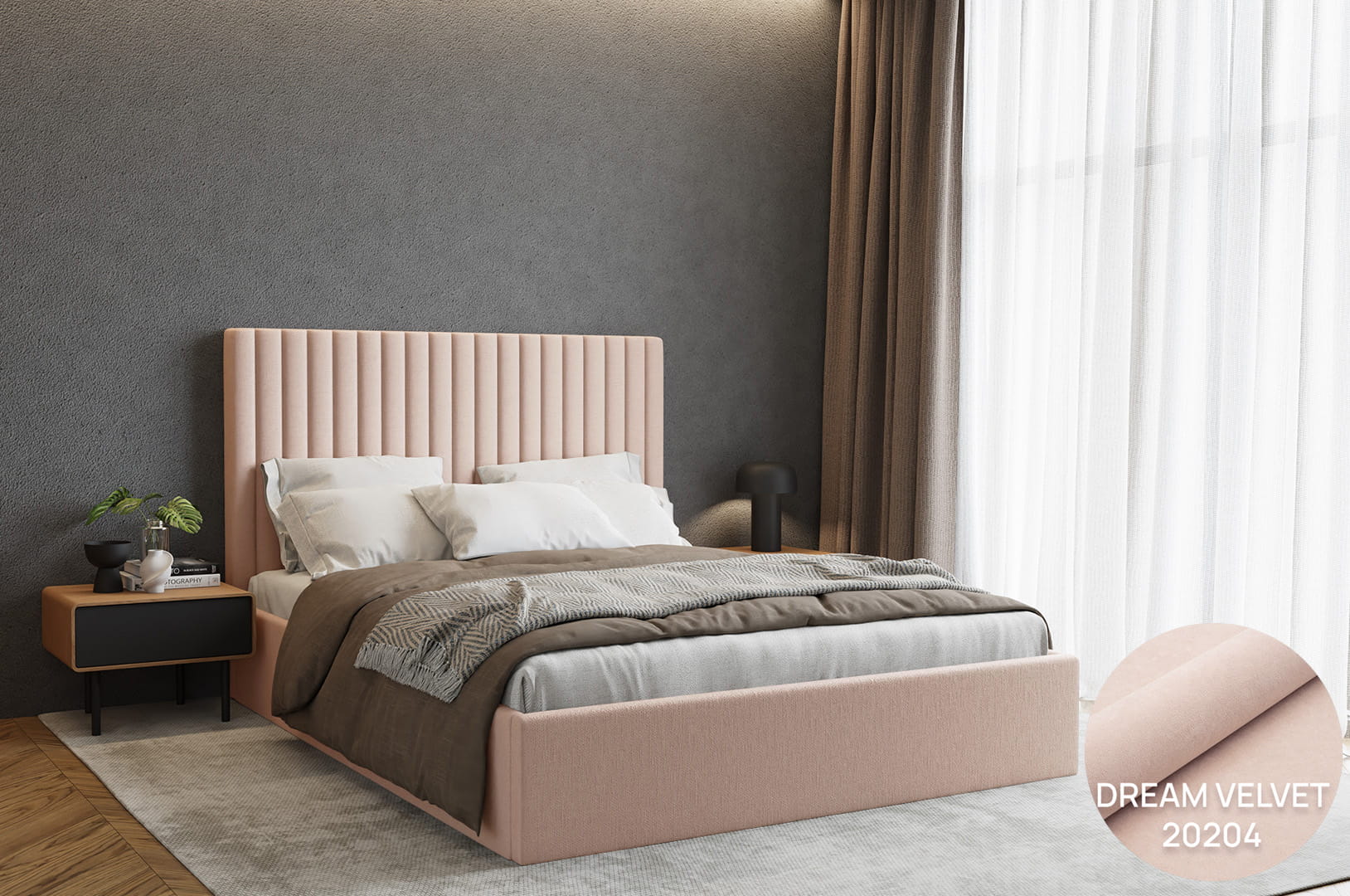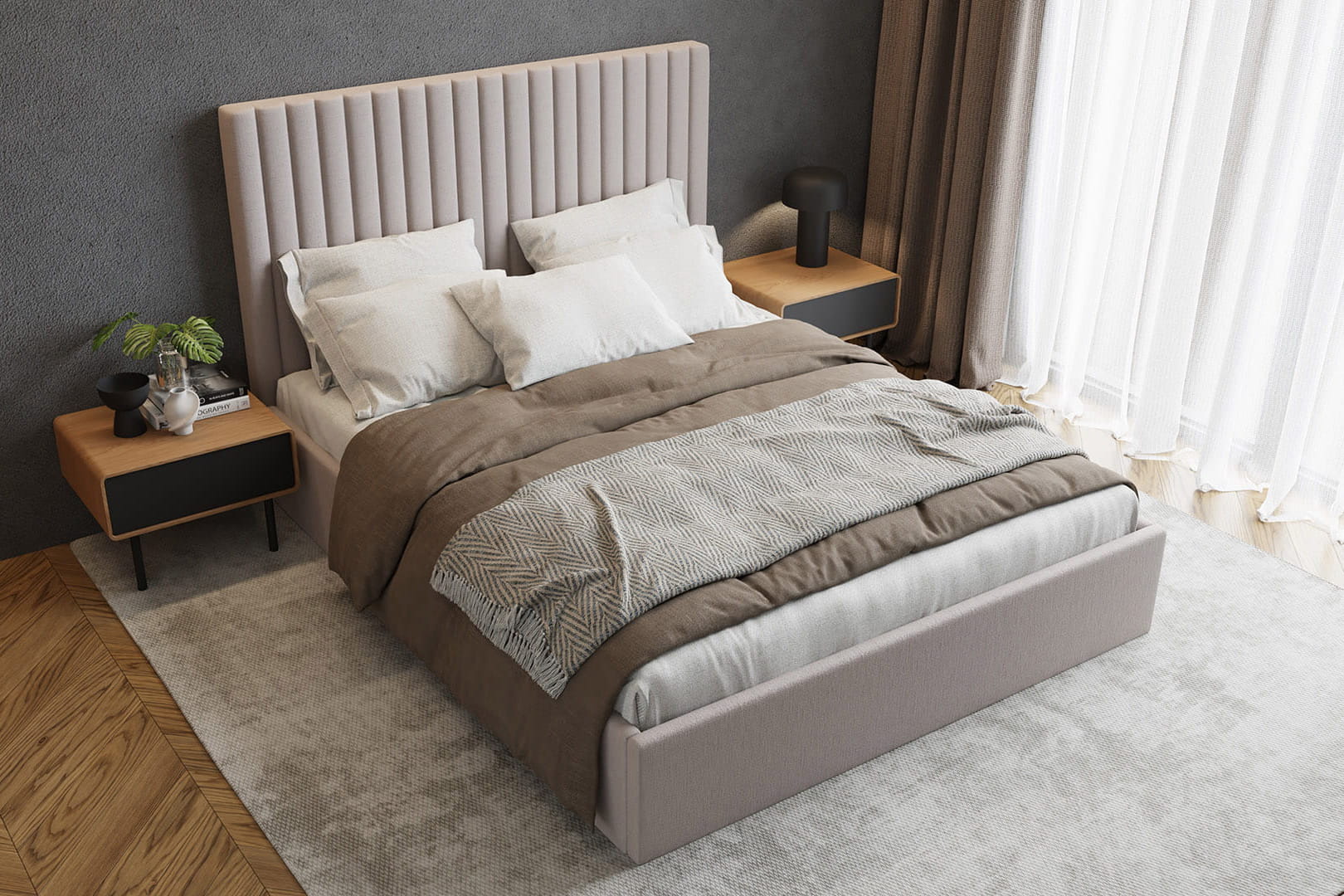 Bett Eden ist eine hervorragende Option für moderne sowie klassische Räume. Die einzigartige Form und das Design ziehen die Blicke auf sich und verleihen dem Raum Charakter.