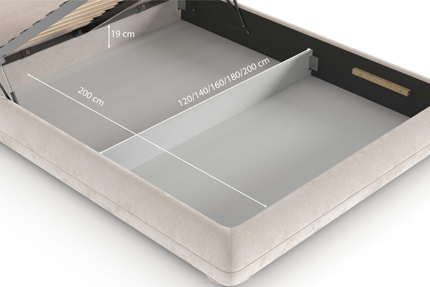 Der funktionale Bettkasten in unseren Betten bietet zusätzlichen Stauraum. Ideal für Bettwäsche, Kissen und andere Gegenstände – so bleibt Ihr Schlafzimmer ordentlich. Hergestellt aus langlebigen Materialien, ist er leicht zu bedienen und sorgt für Komfort im Alltag.