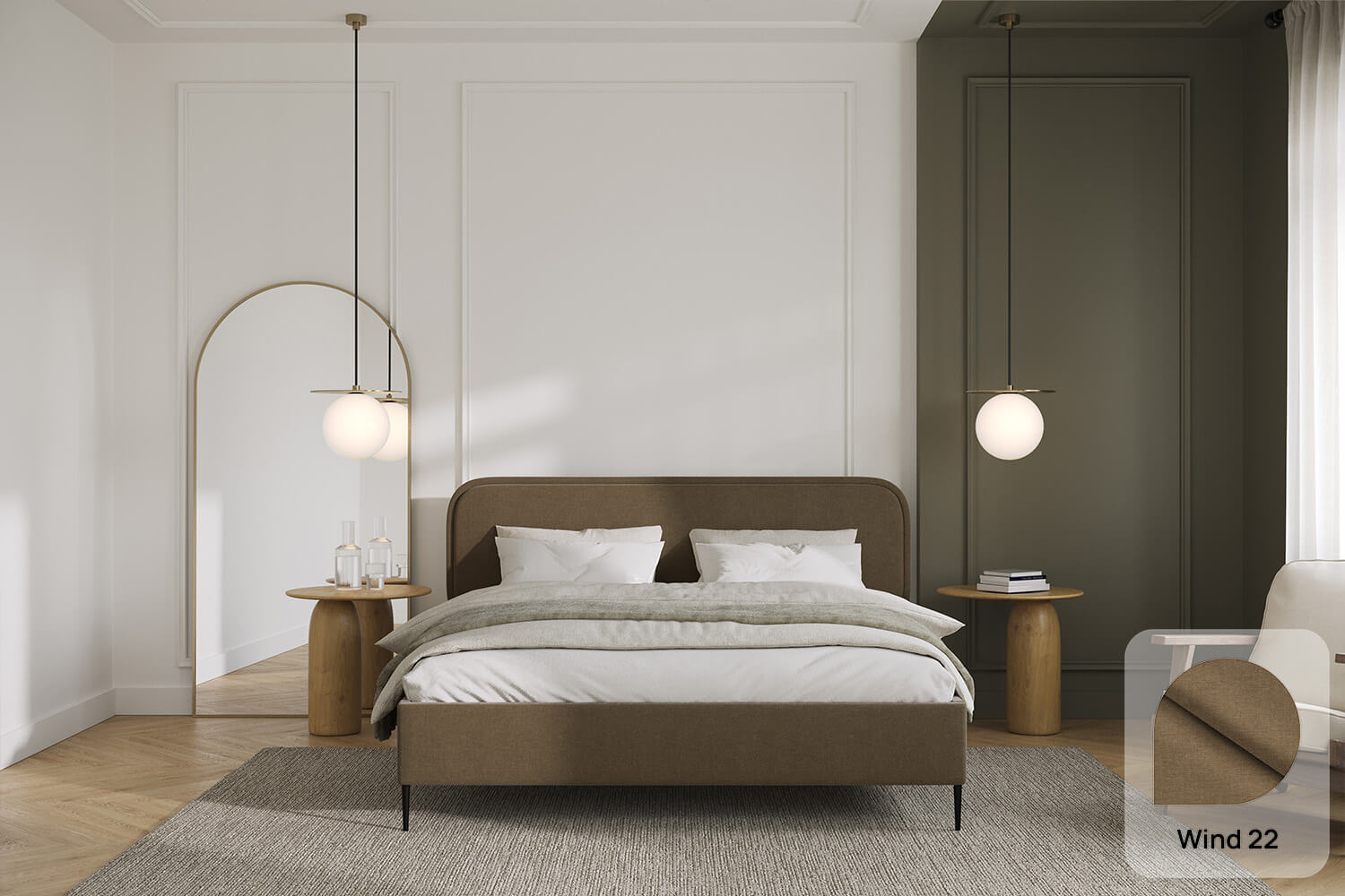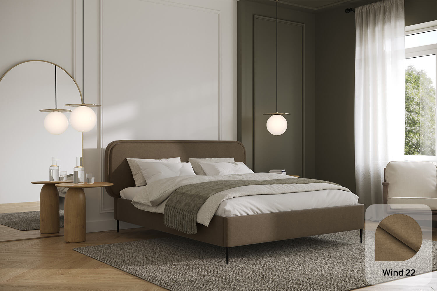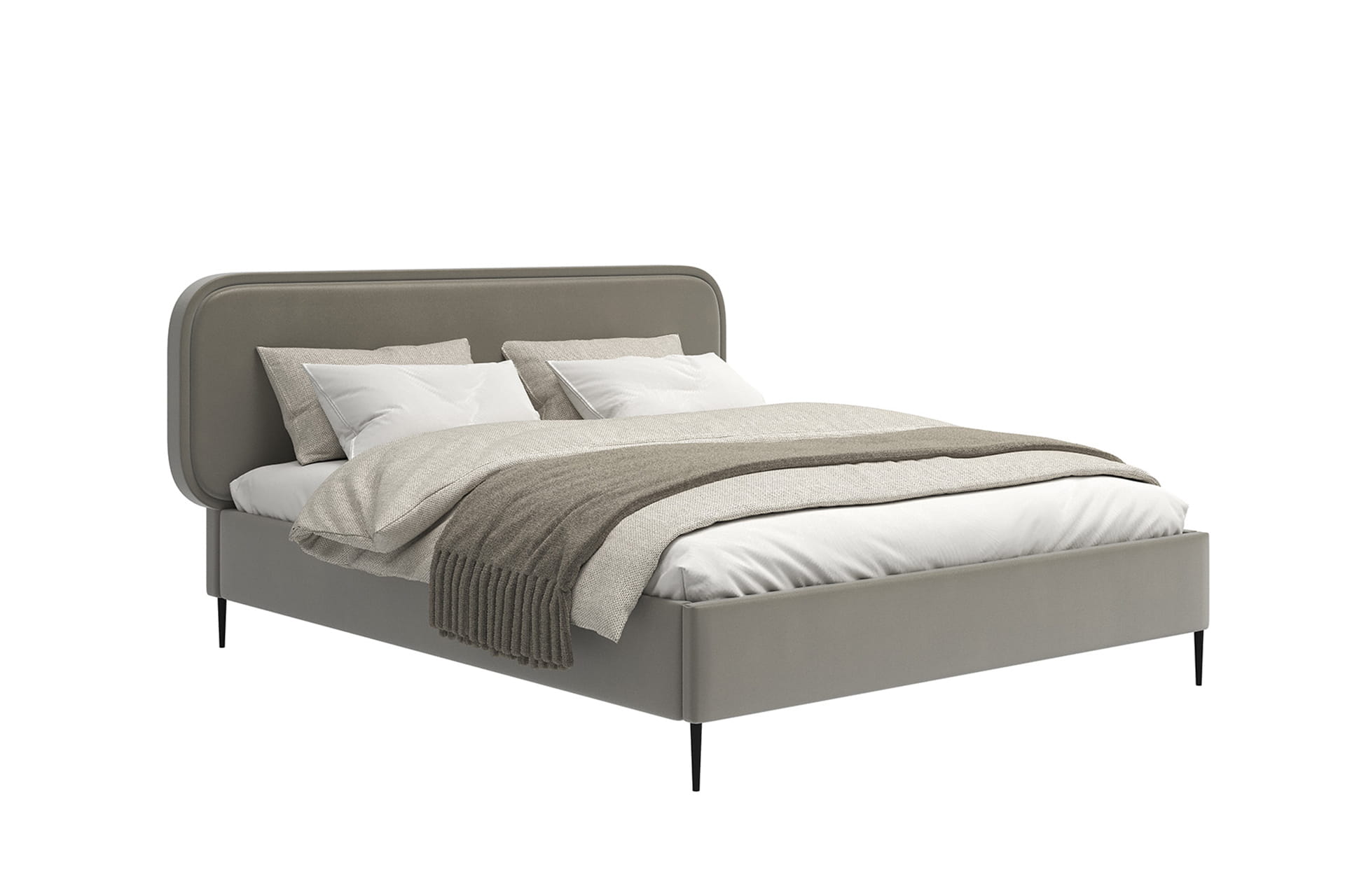 Das gepolsterte Bett Fabiano von MyBed ist die ideale Verbindung aus minimalistischem Design und originellen Akzenten. Der glatte Rahmen, der auf eleganten Beinen ruht, verleiht dem Möbelstück Leichtigkeit und einen modernen Charakter. Die Aufmerksamkeit wird durch das dezent ovale Kopfteil auf sich gezogen, das lediglich eine feine Naht direkt am Rand ziert. Dieses dezente Detail betont die Einzigartigkeit des Bettes, ohne dessen Schlichtheit zu überladen. Das Zentrum des Kopfteils bleibt glatt, was im Schlafzimmer eine Atmosphäre von Ruhe und Harmonie schafft. Fabiano ist eine Option für Menschen, die raffinierten Stil zu schätzen wissen.