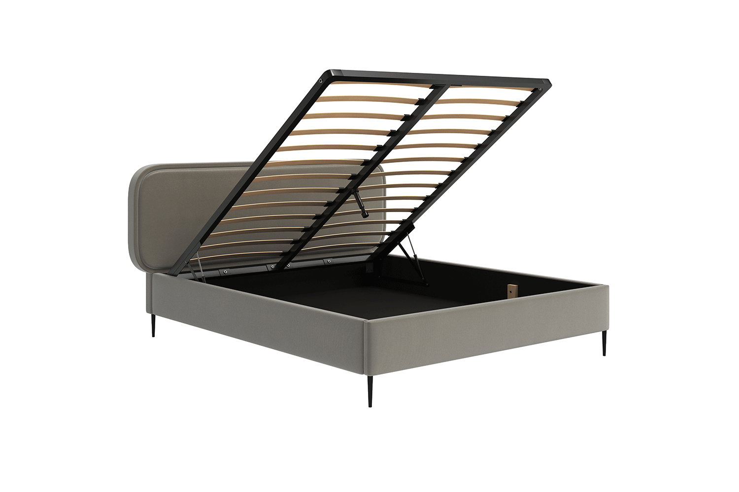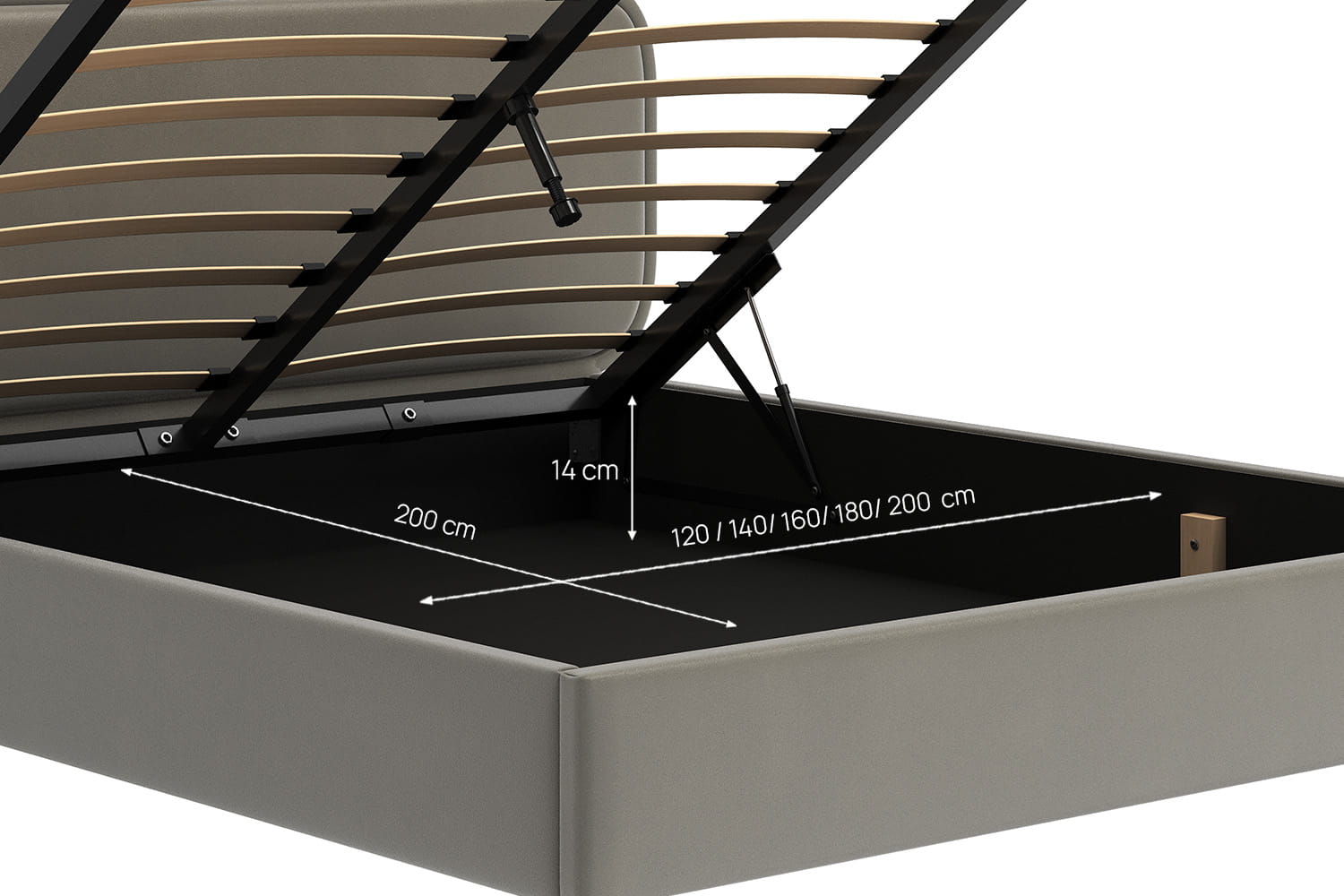 Der funktionale Bettwäscheaufbewahrungsbehälter in unseren Betten bietet zusätzlichen Stauraum. Ideal zur Aufbewahrung von Bettwäsche, Kissen und anderen Gegenständen, hilft er, Ordnung im Schlafzimmer zu halten. Hergestellt aus robusten Materialien, ist er leicht zu bedienen und bietet Komfort im Gebrauch.