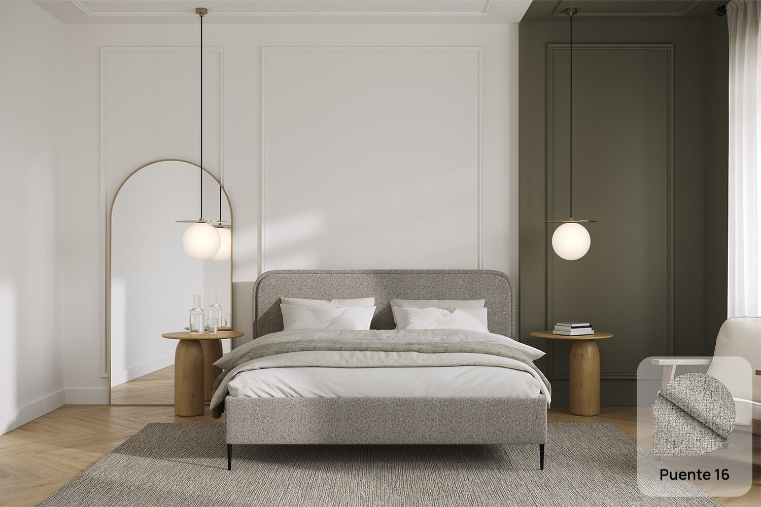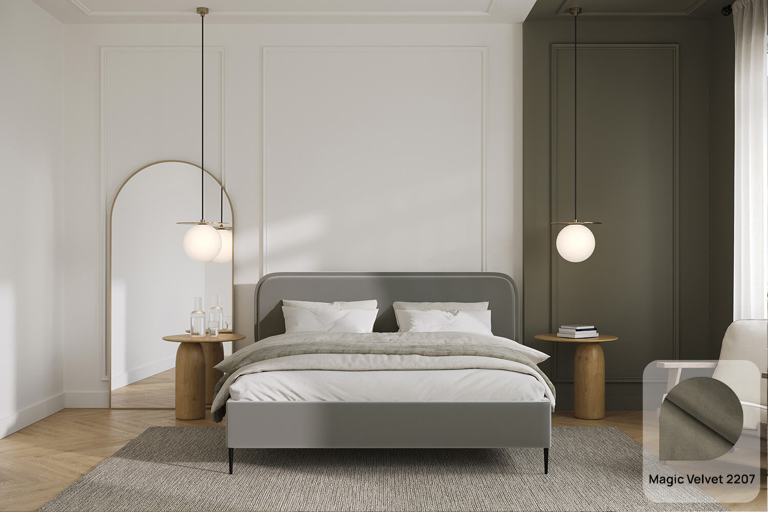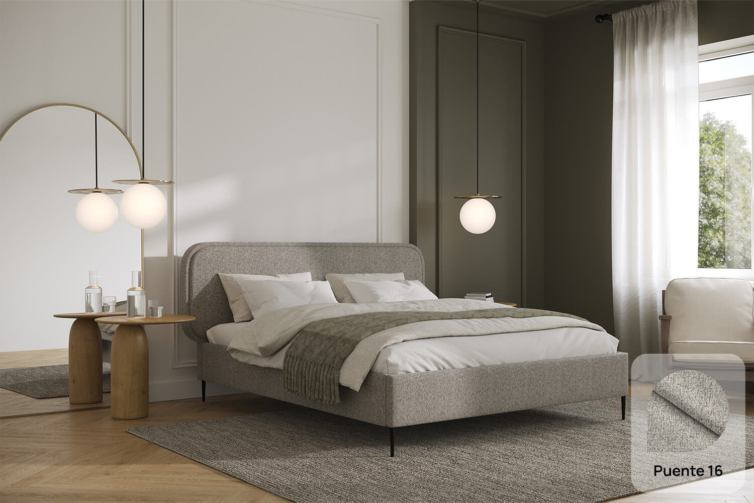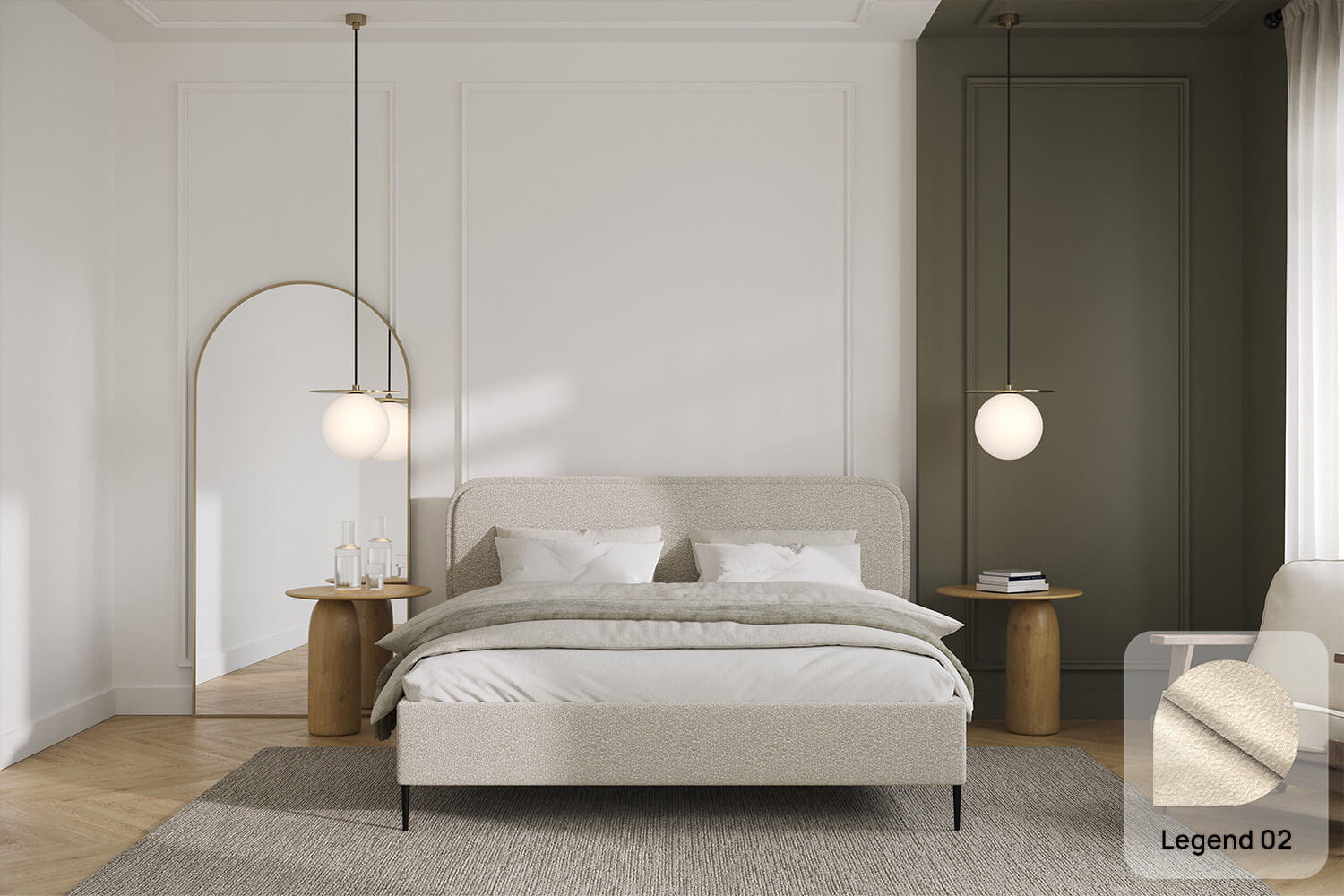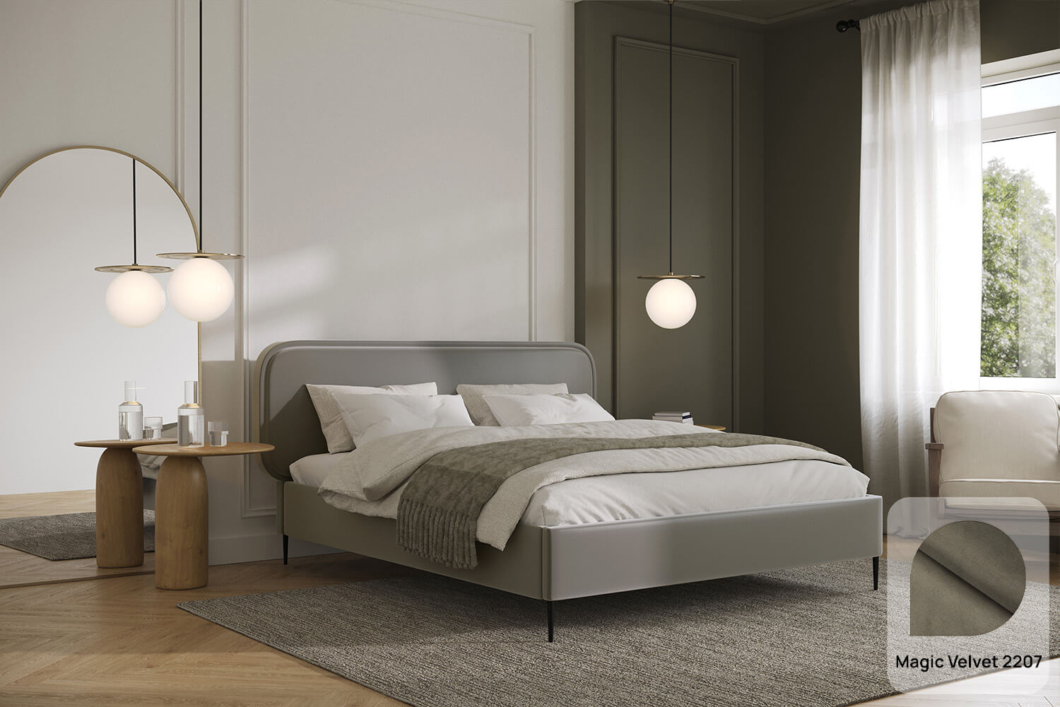Das Bett Fabiano ist eine ausgezeichnete Option sowohl für moderne als auch für klassische Räume. Die unverwechselbare Form und das Design ziehen die Blicke auf sich und verleihen Charakter.