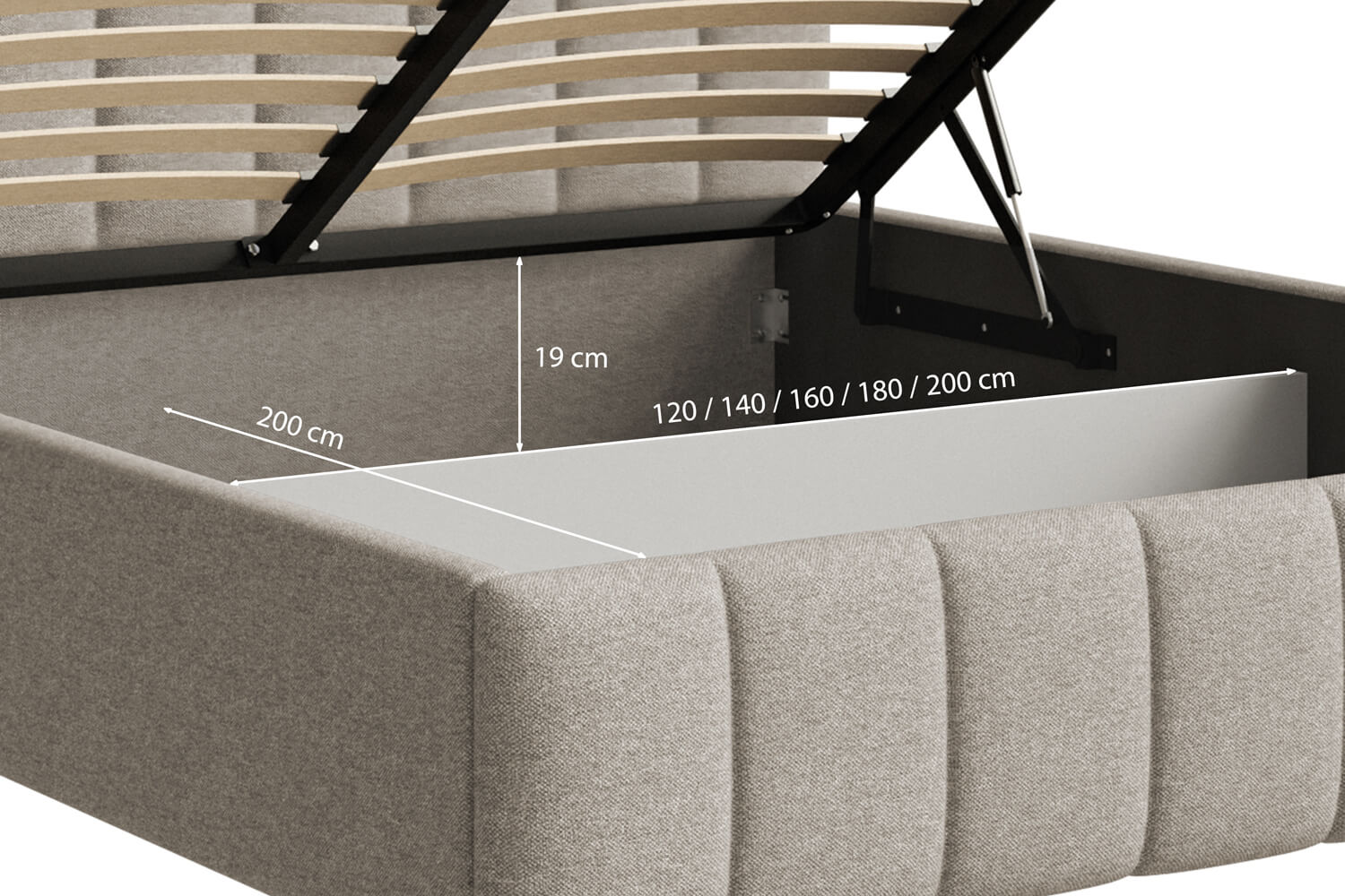 Der funktionale Bettwäschebehälter in unseren Betten bietet zusätzlichen Stauraum. Ideal zur Aufbewahrung von Bettwäsche, Kissen und anderen Gegenständen, hilft er dabei, Ordnung im Schlafzimmer zu halten. Hergestellt aus robusten Materialien, ist er einfach zu bedienen und gewährleistet hohen Bedienungskomfort.