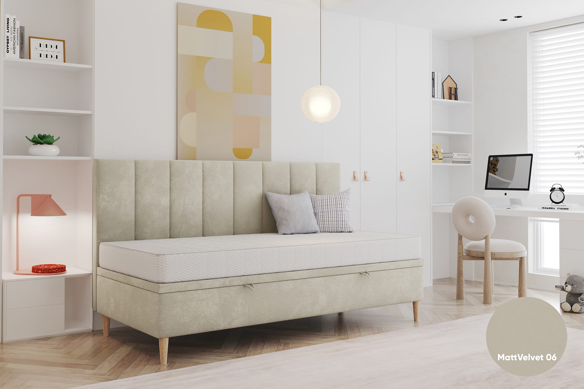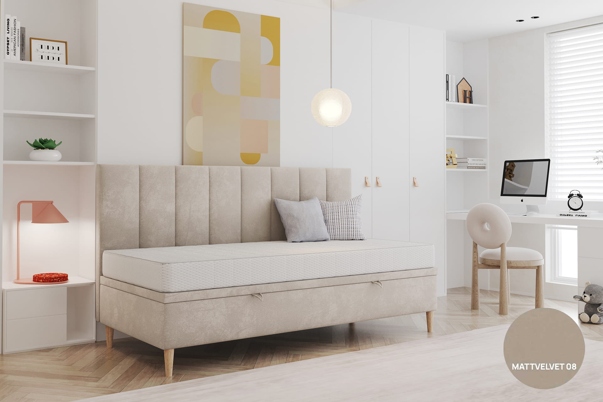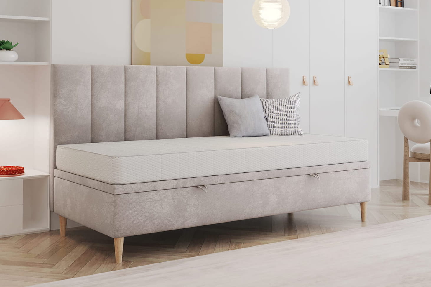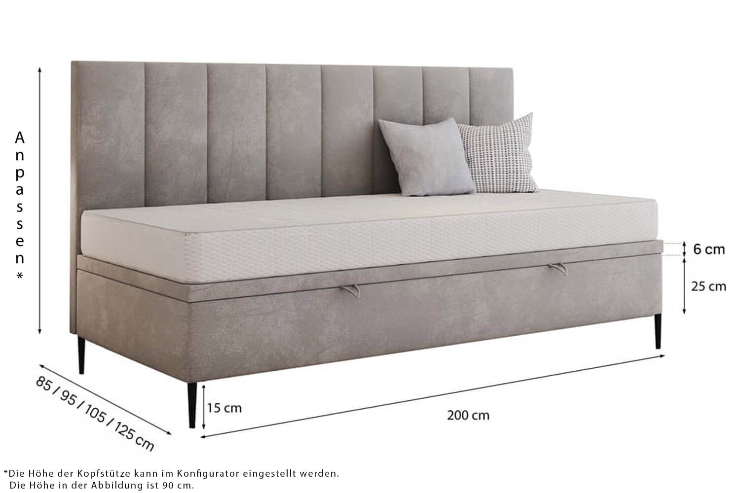 Gestalte dein Bett perfekt nach deinen Bedürfnissen. Wir bieten die Möglichkeit einer vollständigen Personalisierung – von der Größenwahl über den Bezugsstoff bis hin zu zusätzlichen Funktionen wie einem Bettwäschebehälter oder einem Kopfteil. So kannst du ein Bett entwerfen, das ideal zu deinem Interieur und Lebensstil passt.