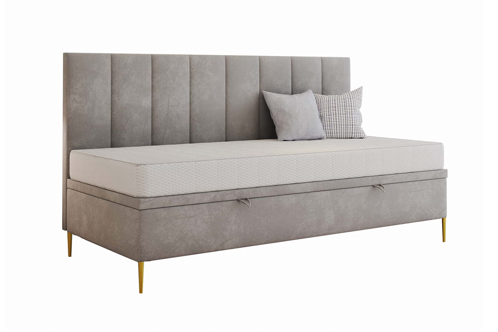 Suchst du ein Bett, das Komfort und elegantes Design wirkungsvoll vereint? Das Einzelbett Gracja von MyBed wird deine Erwartungen erfüllen. Auf stilvollen Beinen platziert, verleiht es jedem Schlafzimmer Leichtigkeit und einen dezenten Charme. Der glatte Rahmen betont den minimalistischen Charakter des Möbels und ermöglicht vielfältige Raumgestaltungen. Ein besonderes Merkmal ist das Kopfteil, das an der längeren Seite angebracht und mit feinen, vertikalen Nähten verziert ist. Dieses Detail schmückt nicht nur, sondern schafft auch einen gemütlichen Raum zum Entspannen. Das Bett Gracja sorgt für einen komfortablen Schlaf in einem stilvollen Ambiente!