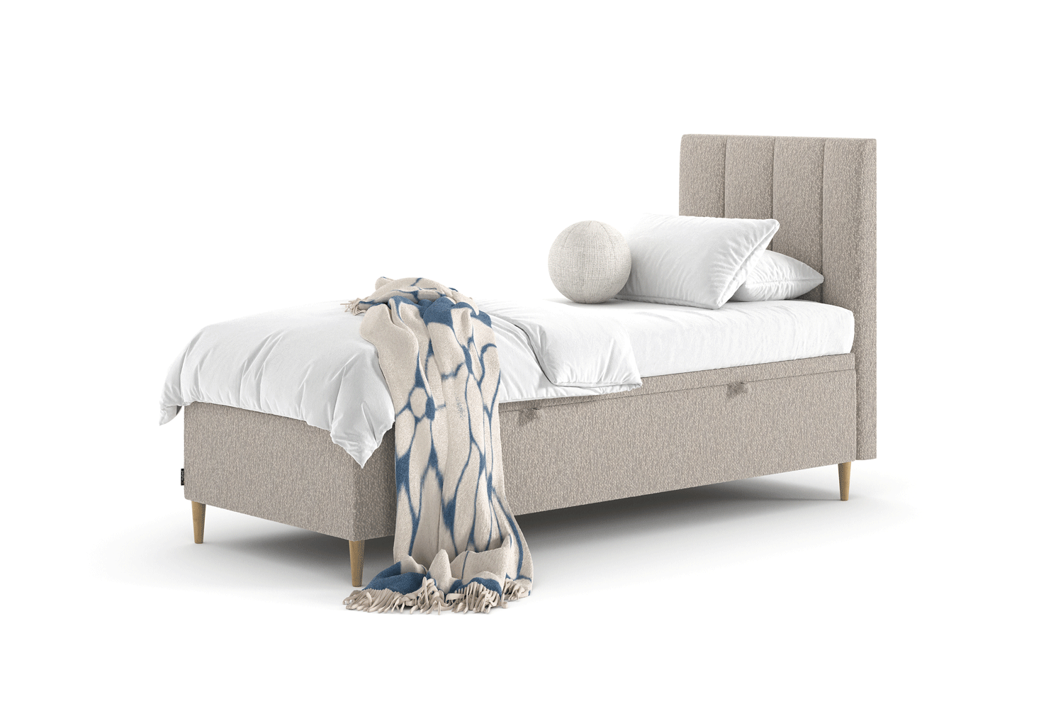 Die ideale Kombination aus modernem Design und Funktionalität? Dieses Einzelbett Hugo von MyBed könnte genau das sein, was Sie brauchen! Auf stilvollen Beinen platziert, wirkt es leicht und elegant, verleiht jedem Schlafzimmer Charakter und erleichtert die Reinigung Ihres Zuhauses. Der glatte Rahmen unterstreicht den minimalistischen Stil des Möbels, während das mit vertikalen Paneelen verzierte Kopfteil ein Element von Gemütlichkeit und Wärme einbringt. Der praktische Bettkasten, der in der Konstruktion des Bettes verborgen ist, ist eine ausgezeichnete Lösung für diejenigen, die Ordnung und Komfort schätzen. Es ist nicht nur ein Schlafplatz, sondern ein Möbelstück, das jedes Schlafzimmer verwandeln wird!