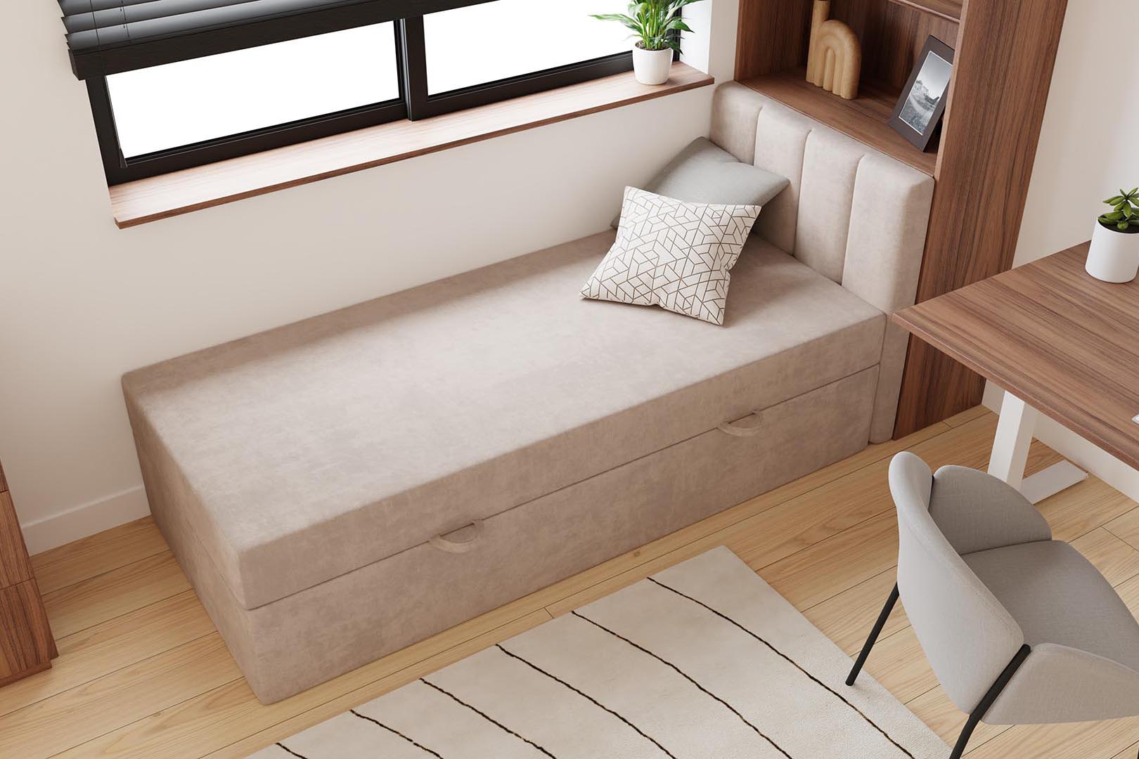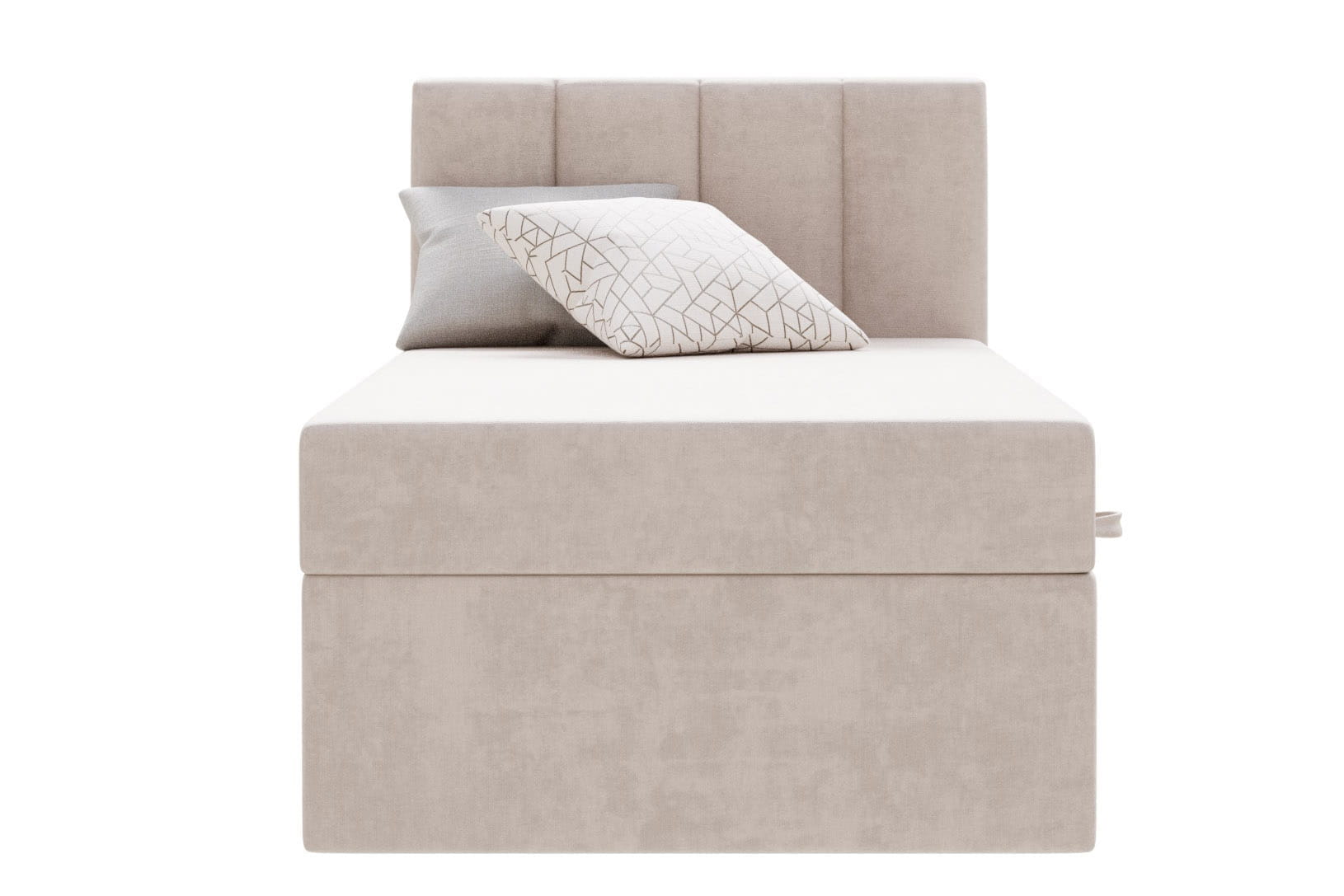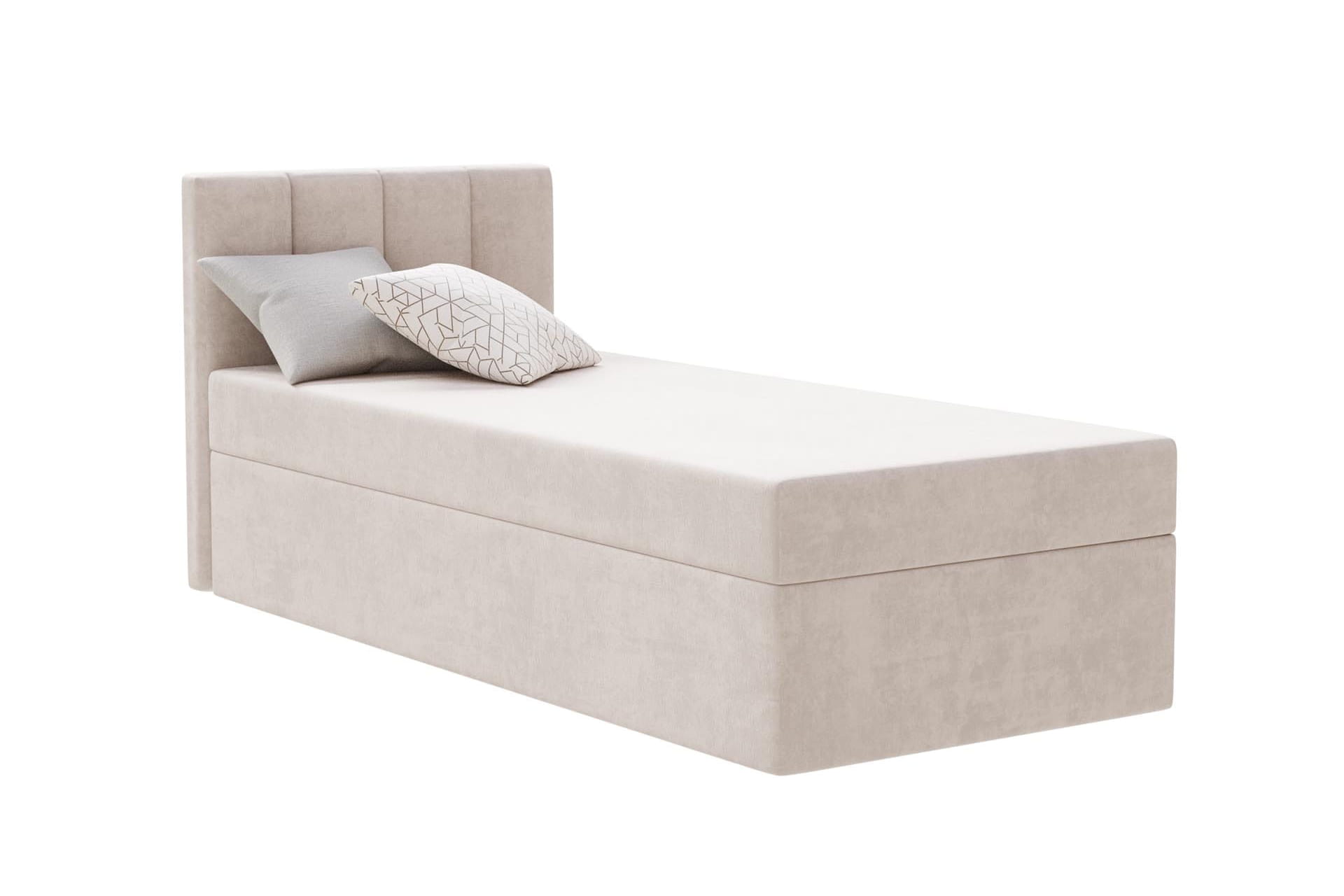 Das kontinentale Einzelbett Kaja von MyBed.de ist die perfekte Lösung für alle, die Komfort und Funktionalität schätzen. Das flauschige Kopfteil mit vertikalen Nahtlinien verleiht dem Schlafzimmer Gemütlichkeit und Eleganz, während es gleichzeitig eine bequeme Rückenlehne zum Entspannen bietet. Die glatte Form des Bettes sorgt dafür, dass es sich ideal mit verschiedenen Einrichtungsstilen kombinieren lässt, von modern bis klassisch. Zudem ermöglicht ein praktischer Bettkasten eine effiziente Raumnutzung und hilft, Ordnung zu halten. Das Bett Kaja ist eine Wahl, die Ästhetik mit praktischen Lösungen vereint!