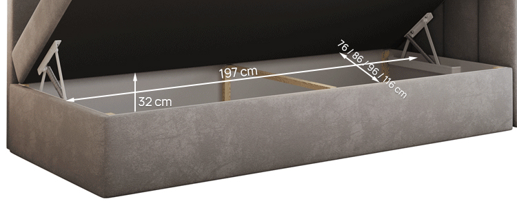 Der funktionale Bettkasten in unseren Betten bietet zusätzlichen Stauraum. Ideal zur Aufbewahrung von Bettwäsche, Kissen und anderen Gegenständen, hilft er, Ordnung im Schlafzimmer zu bewahren. Hergestellt aus langlebigen Materialien, ist er einfach zu bedienen und gewährleistet Komfort.