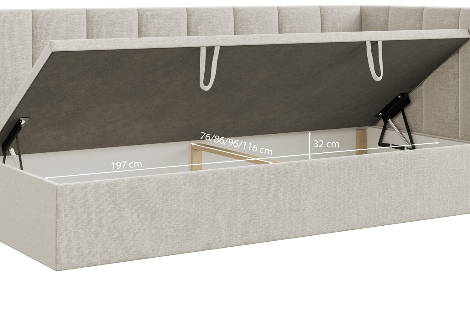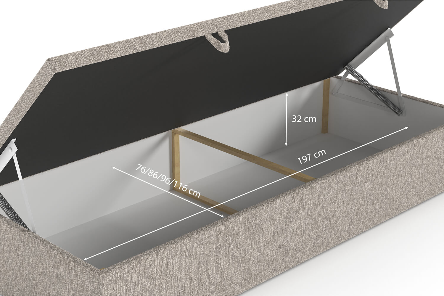 Der funktionale Bettwäschebehälter in unseren Betten bietet zusätzlichen Stauraum. Ideal zum Verstauen von Bettwäsche, Kissen und anderen Gegenständen, hilft er, Ordnung im Schlafzimmer zu halten. Hergestellt aus robusten Materialien, ist er einfach zu bedienen und gewährleistet hohen Komfort.