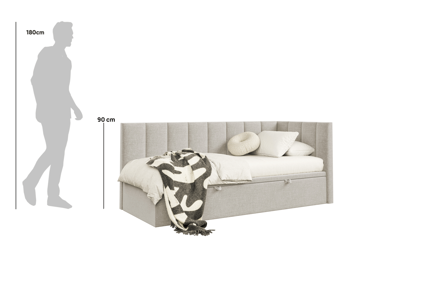 Es vereint hervorragend Funktionalität und Stil – ja, es ist das Einzelbett Lara von MyBed, das ideal den Bedürfnissen von Jugend- und Kinderzimmern entspricht, aber nicht nur. Inspiriert von der Konstruktion kontinentale Betten, zeichnet sich Lara durch eine massive Basis aus und bewahrt zugleich ihre Leichtigkeit dank eines dezenten Designs. Elegante, rechteckige Nähte und eine moderne Form sorgen dafür, dass es sich perfekt in jedes Interieur einfügt und diesem einen gemütlichen und ästhetischen Charakter verleiht. Das Bett Lara ist nicht nur ein Ort zum Schlafen, sondern auch ein stilvolles Accessoire, das jedem Schlafzimmer Charme verleiht.