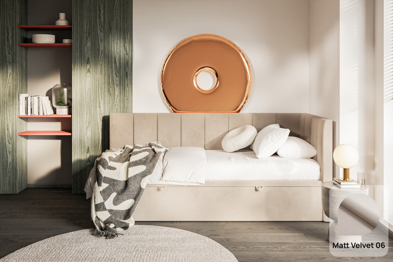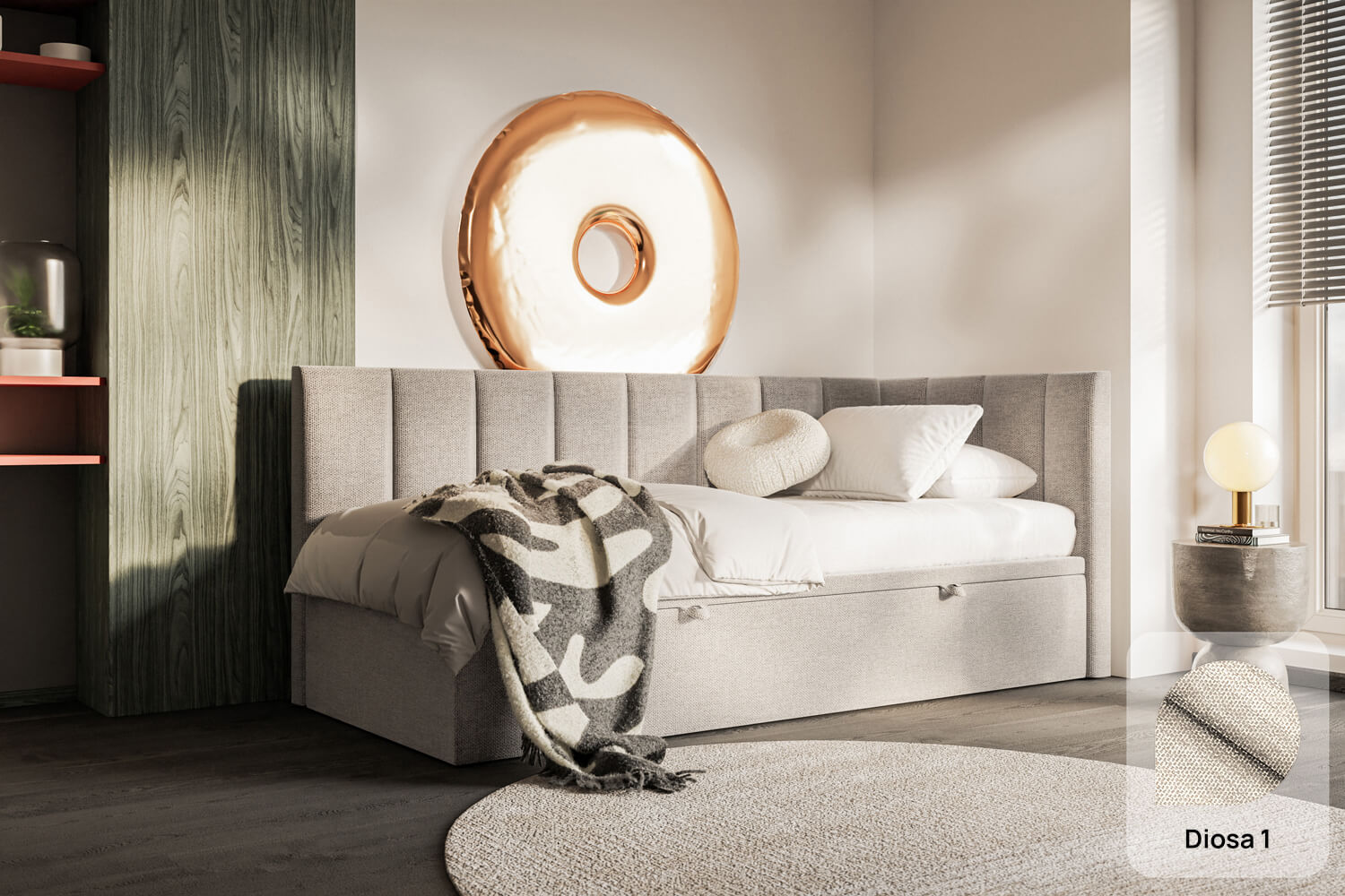 Gestalte dein Bett perfekt nach deinen Bedürfnissen. Wir bieten die Möglichkeit einer vollständigen Personalisierung – von der Größenwahl über die Auswahl des Bezugsstoffs bis hin zu zusätzlichen Funktionen wie einem Bettwäschebehälter oder einem Kopfteil. So kannst du ein Bett entwerfen, das ideal zu deinem Interieur und Lebensstil passt.