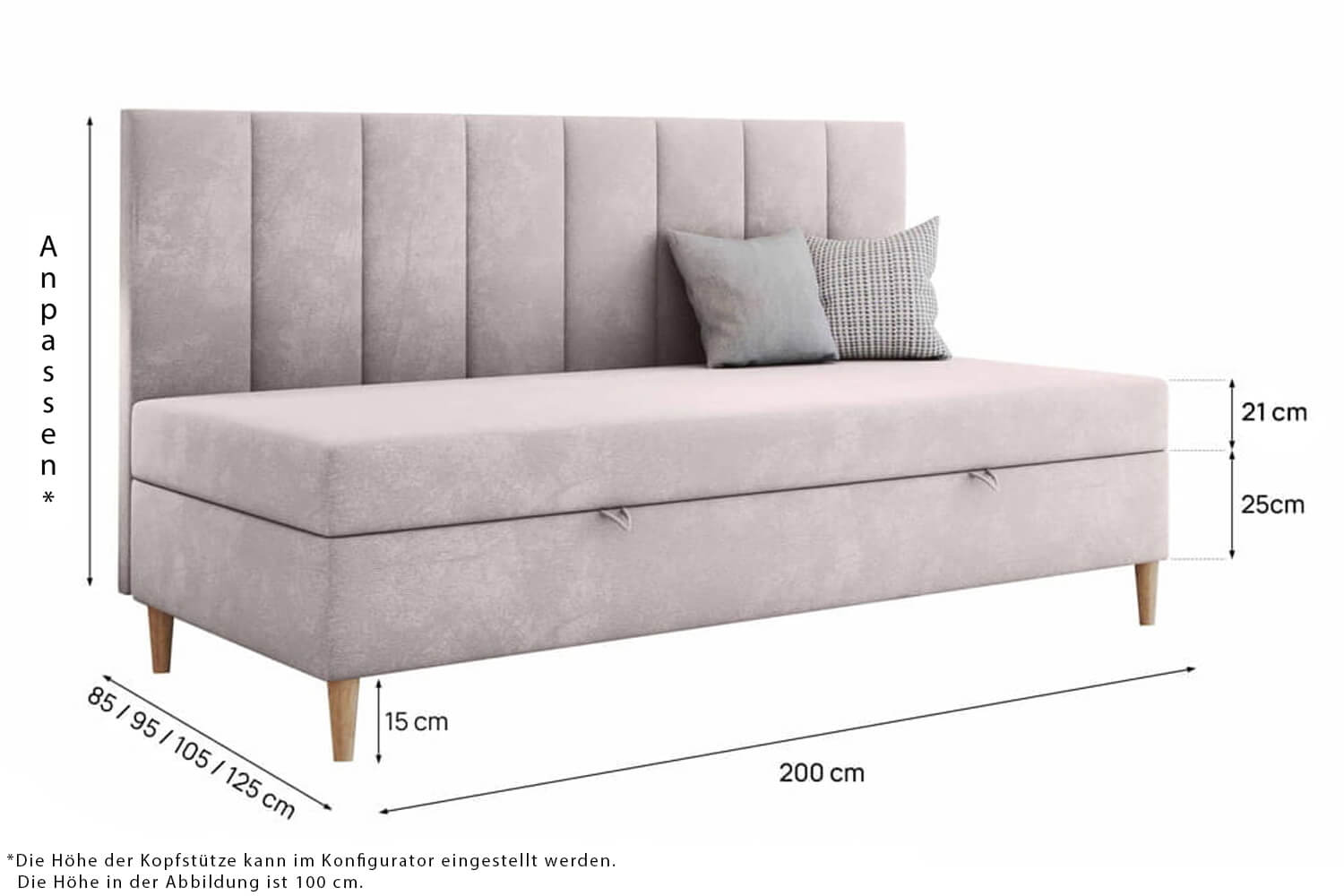 Gestalte ein Bett, das perfekt auf deine Bedürfnisse abgestimmt ist. Wir bieten die Möglichkeit zur vollständigen Personalisierung – von der Auswahl der Größe über den Bezugstoff bis hin zu zusätzlichen Funktionen wie Bettwäschebehälter oder Kopfteil. So kannst du ein Bett entwerfen, das ideal zu deinem Interieur und Lebensstil passt.