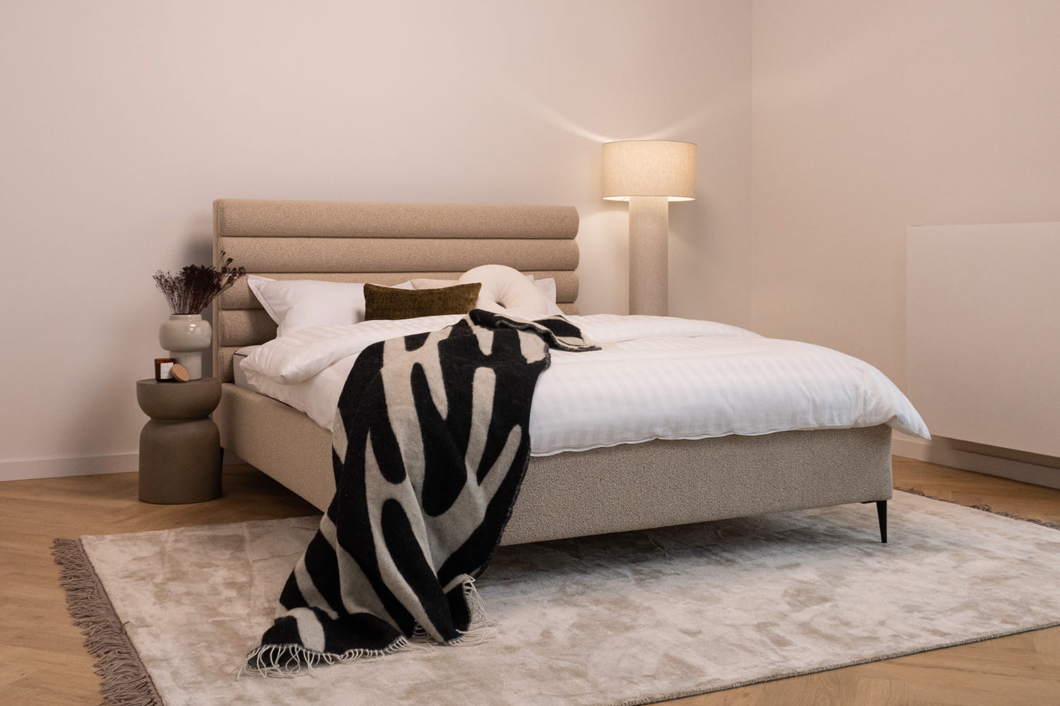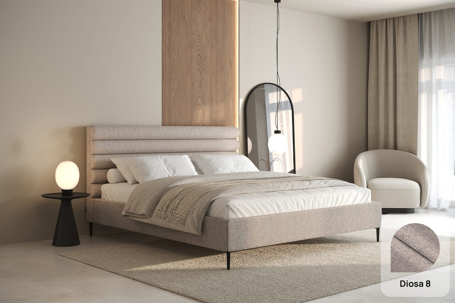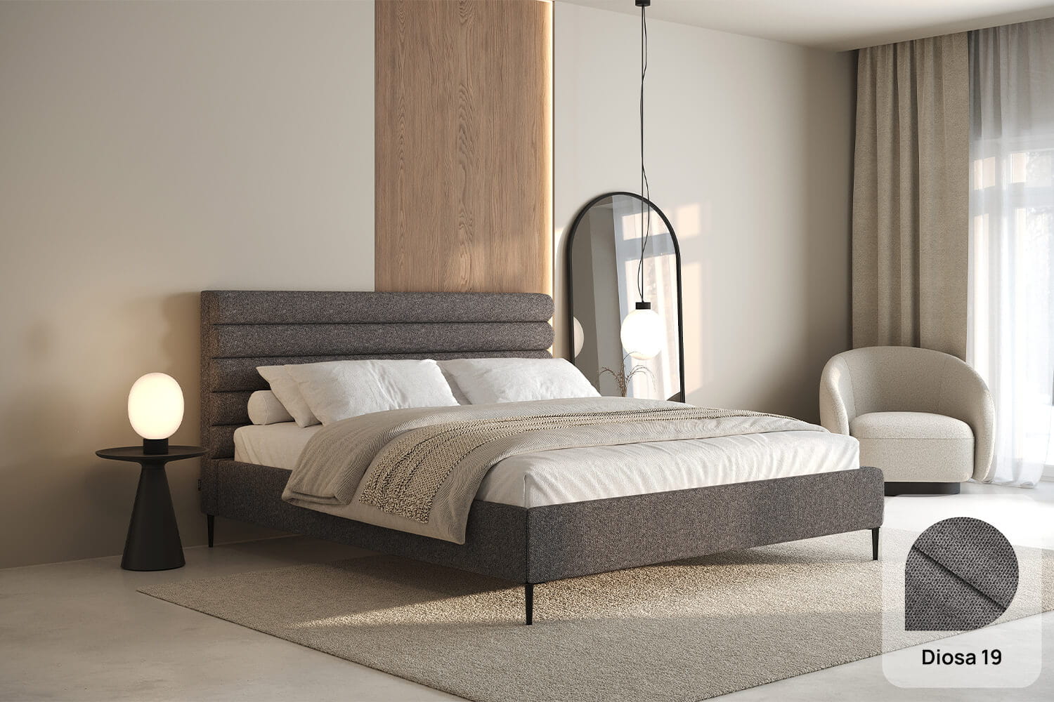 Das Bett Leno Lite von MyBed ist eine harmonische Kombination aus minimalistischem Stil und außergewöhnlichem Komfort, die eine einzigartige Atmosphäre in Ihr Schlafzimmer bringt! Das wahre Highlight dieses Modells ist das weiche Kopfteil mit horizontalen Polsterrollen, die ein Gefühl von Gemütlichkeit und Weichheit vermitteln – als würde es zum Entspannen einladen. Dieses Kopfteil begeistert nicht nur durch sein Design, sondern bietet auch eine bequeme Rückenlehne – perfekt für entspannte Abende oder den morgendlichen Kaffee im Bett. Dank seiner dezenten Linien fügt sich das Leno Lite-Bett perfekt in verschiedene Einrichtungsstile ein.