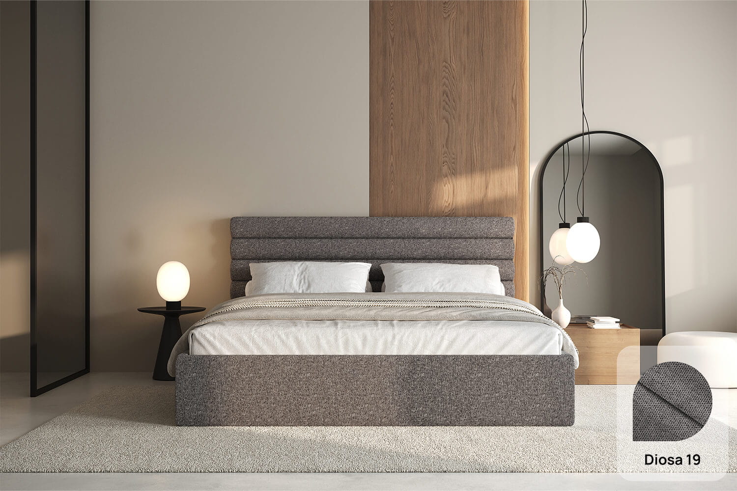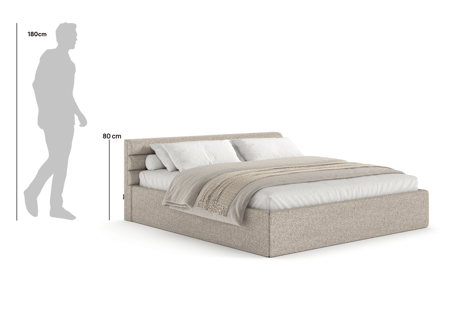Das Bett Leno von MyBed ist die ideale Wahl für alle, die vor allem Gemütlichkeit und Wärme schätzen. Die glatten Bettseiten unterstreichen seine moderne, minimalistische Form und bringen Harmonie und Ruhe ins Schlafzimmer. Besonders das Kopfteil zieht die größte Aufmerksamkeit auf sich – flauschig, weich und mit horizontalen Rollen verziert, die dem Bett einen unverwechselbaren Look verleihen. Dieses subtile Detail macht Leno zu einem einzigartigen Ort der Entspannung – perfekt, um nach einem langen Tag zur Ruhe zu kommen. Die horizontalen Rollen am Kopfteil verleihen nicht nur Stil, sondern sorgen auch für eine bequeme Stütze beim Relaxen.