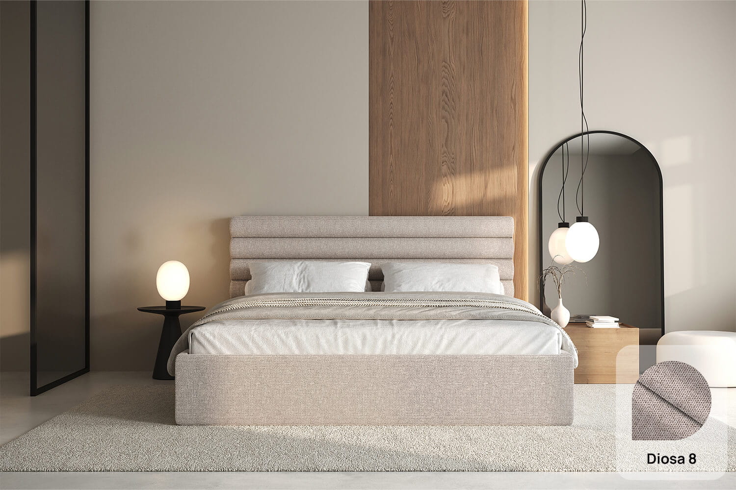 Das Bett Leno fügt sich perfekt in jede Einrichtung ein – von modernen bis hin zu klassischen Interieurs. Durch sein leichtes Design passt es auch in kleinere Räume.