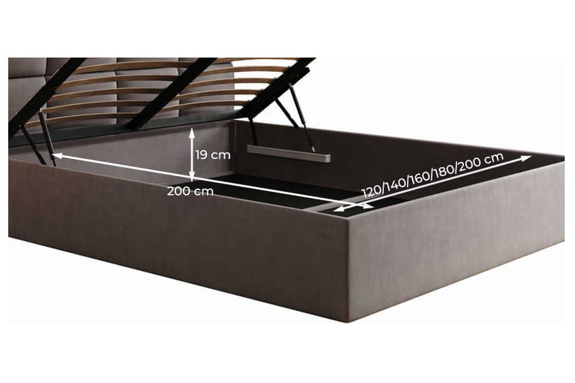 Der funktionale Bettwäschebehälter in unseren Betten bietet zusätzlichen Stauraum. Ideal zur Aufbewahrung von Bettwäsche, Kissen und anderen Gegenständen, hilft er dabei, Ordnung im Schlafzimmer zu halten. Hergestellt aus langlebigen Materialien, ist er einfach zu bedienen und sorgt für Komfort.