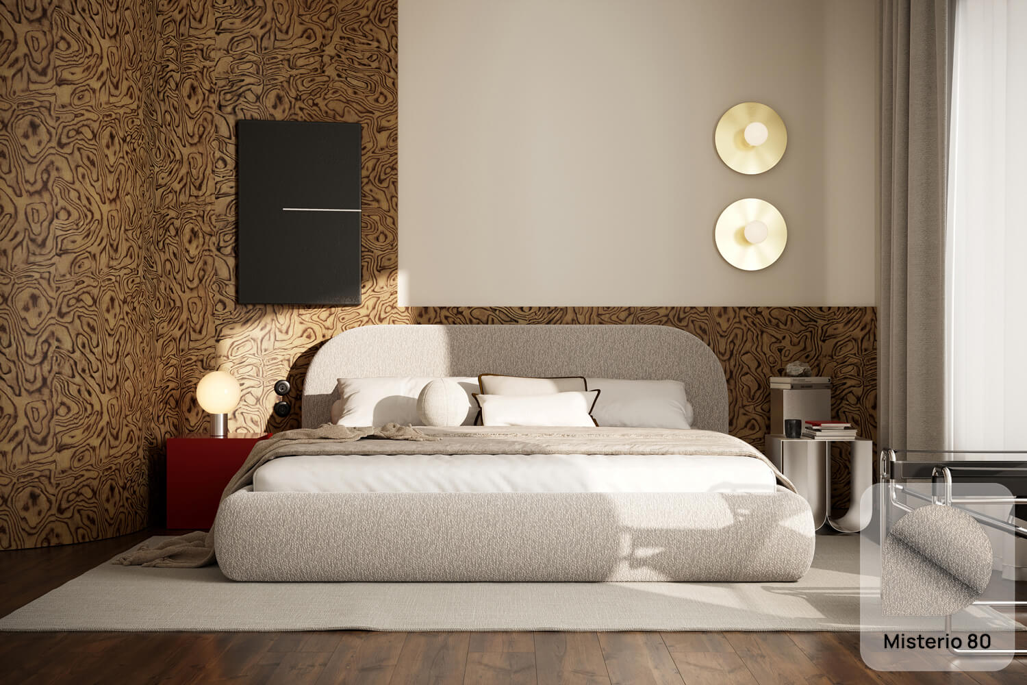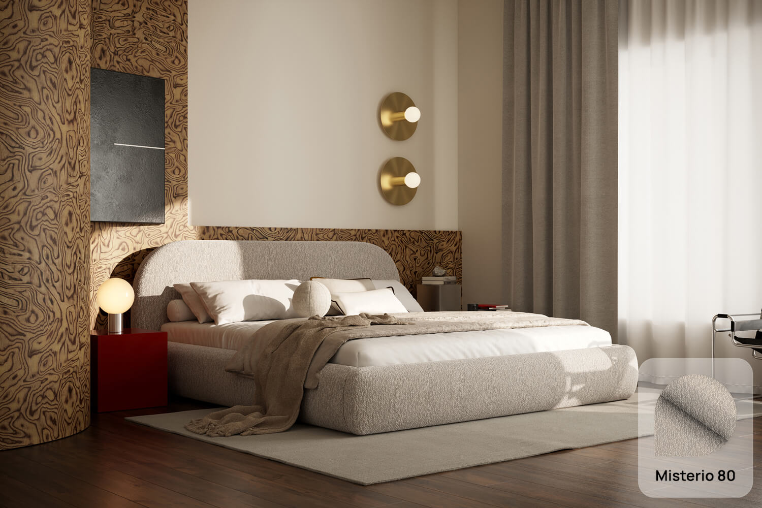 Livv von MyBed ist ein Bett, das bereits auf den ersten Blick außergewöhnlichen Komfort und Weichheit verspricht. Sein gepolstertes, sanft abgerundetes Kopfteil erinnert an ein großes, flauschiges Kissen und schafft so eine gemütliche Rückenlehne, ideal für den entspannten Abend. Die dezente, neutrale Farbgebung des Bezugs sorgt dafür, dass dieses Modell sowohl in modernen als auch in klassischeren Raumgestaltungen hervorragend zur Geltung kommt. Die leichte und harmonische Form des Livv-Bettes bringt in das Schlafzimmer eine Atmosphäre von Ruhe, Wärme und stilvollem Komfort – es ist die ideale Wahl für alle, die Ästhetik mit dem Komfort alltäglicher Entspannung verbinden.
