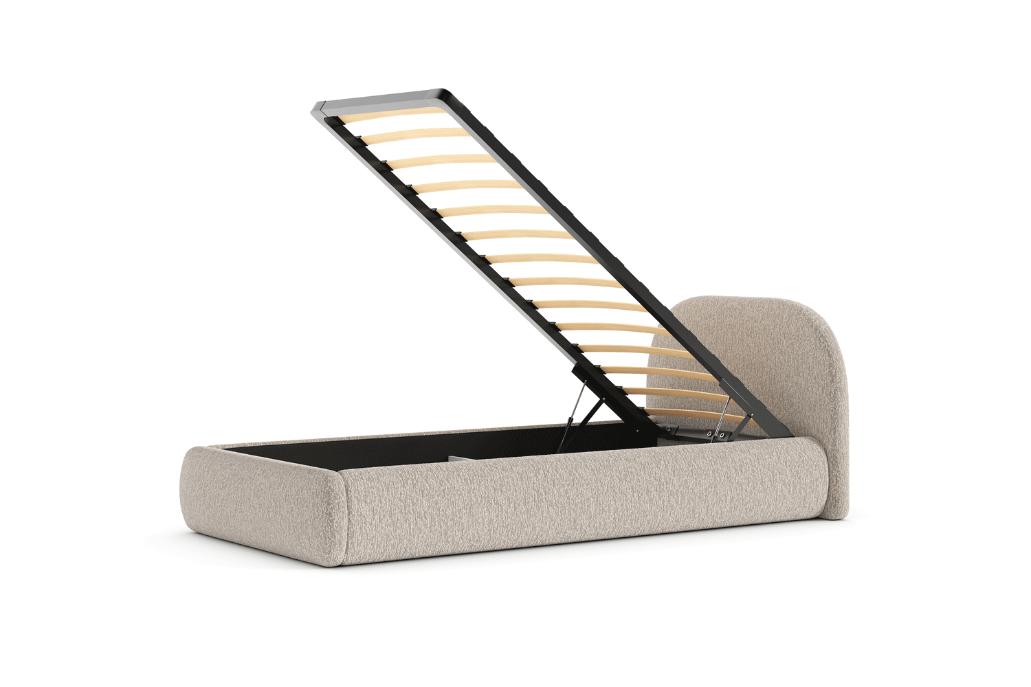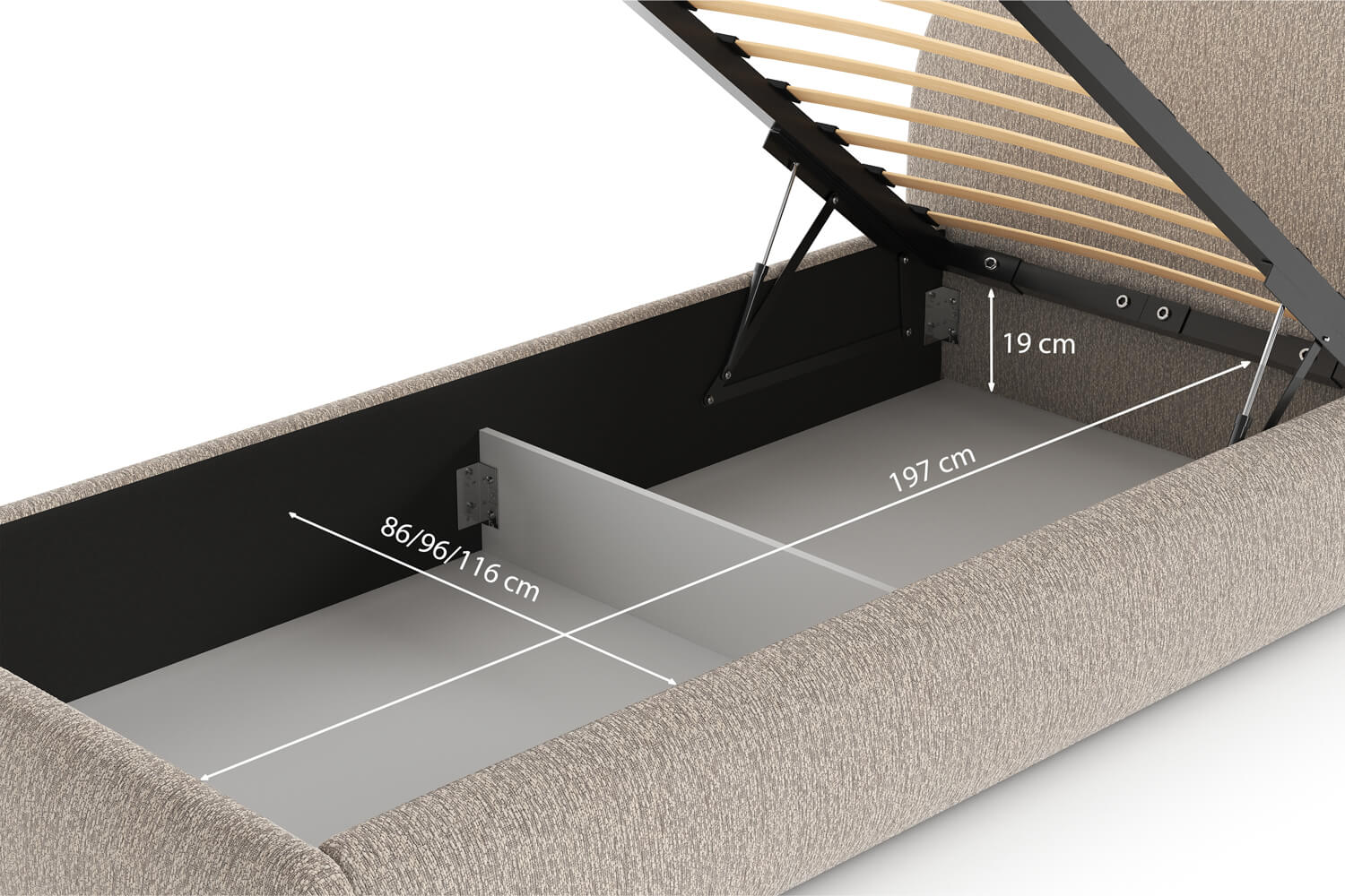 Version mit Bettwäschefach, das von der Seite geöffnet wird