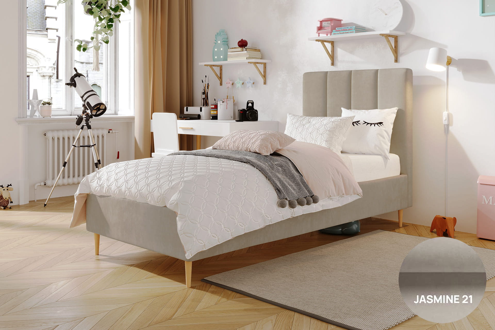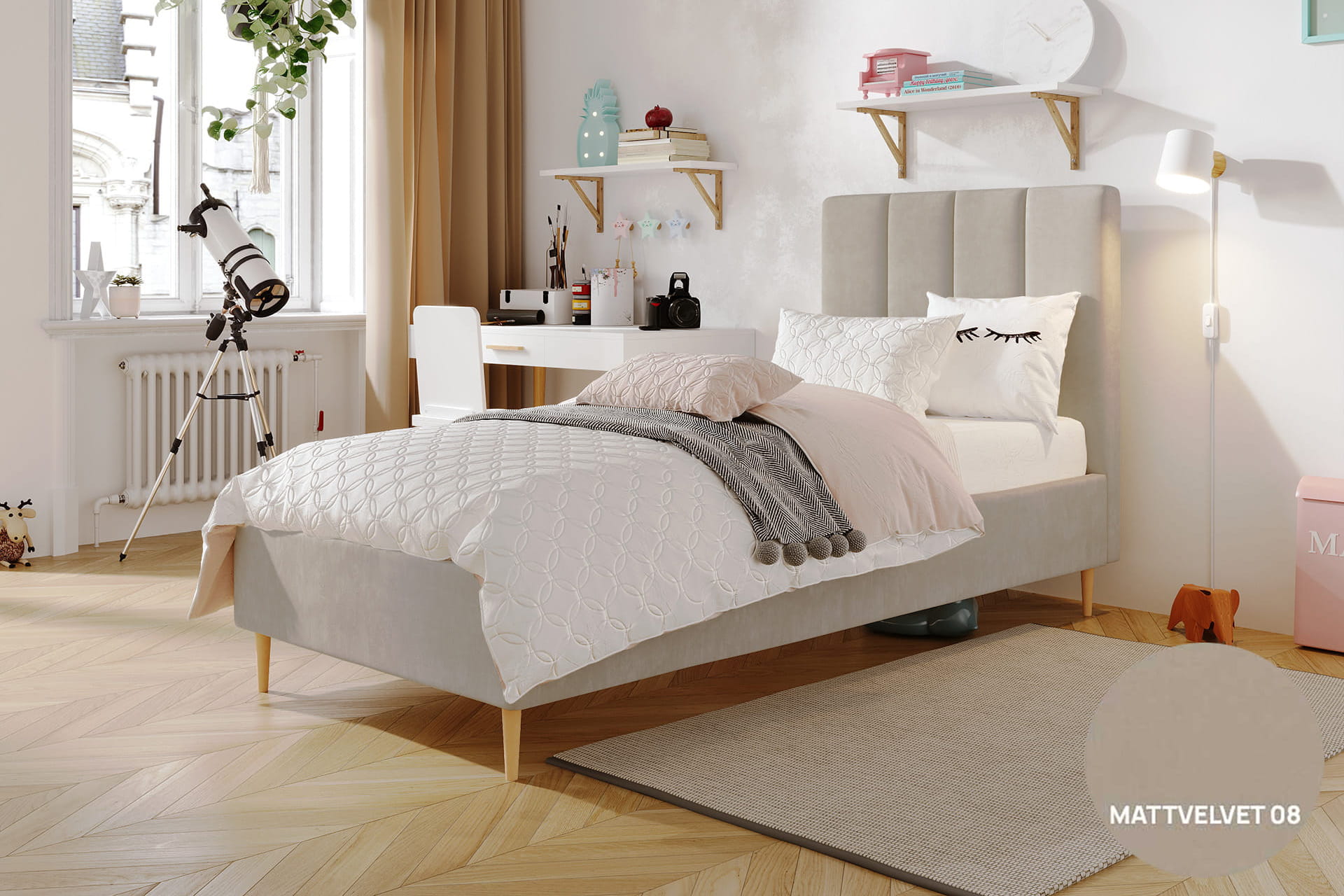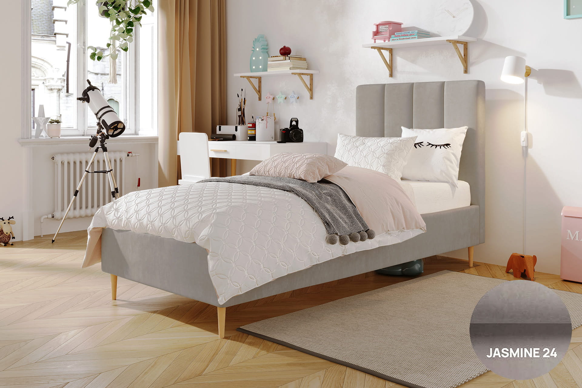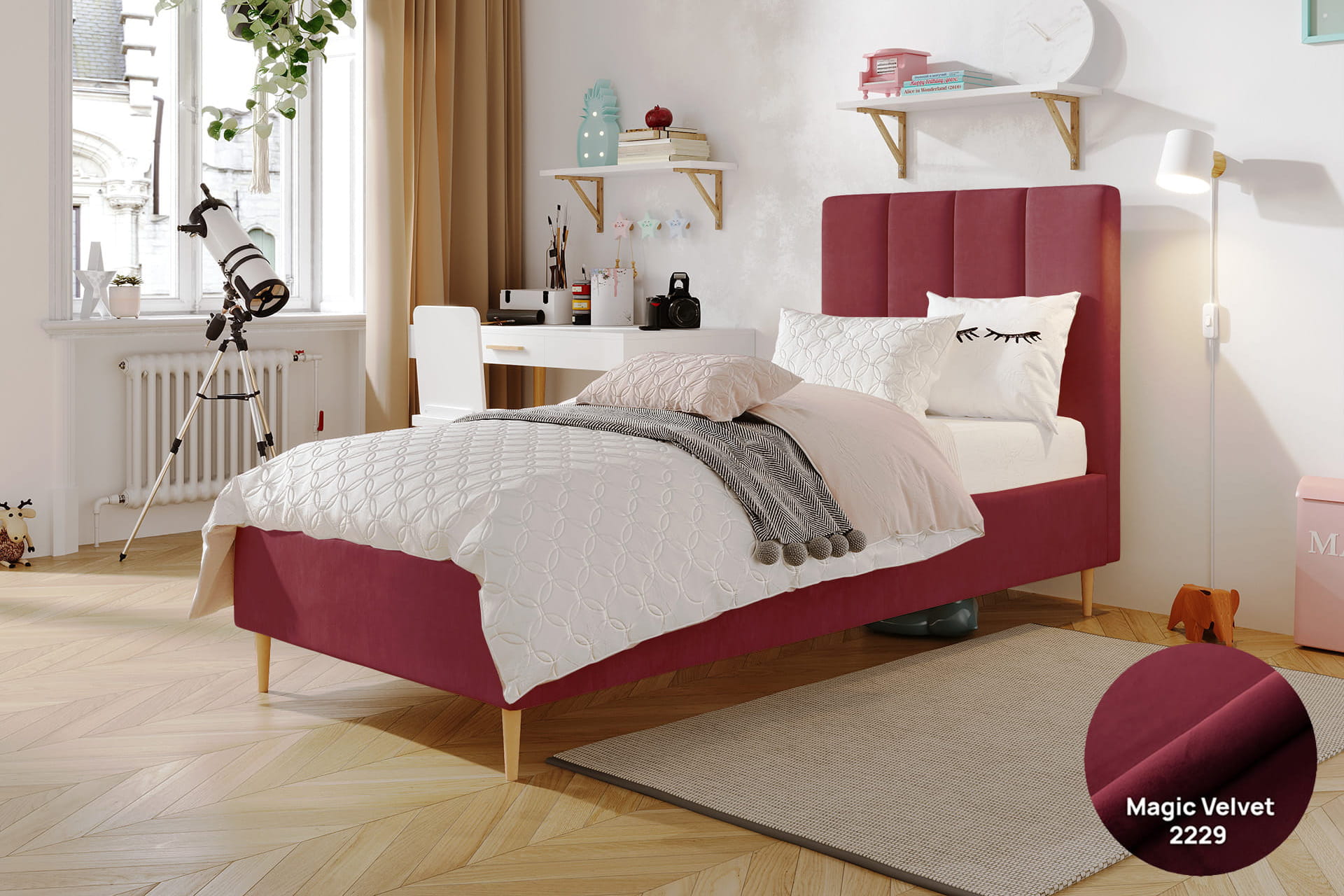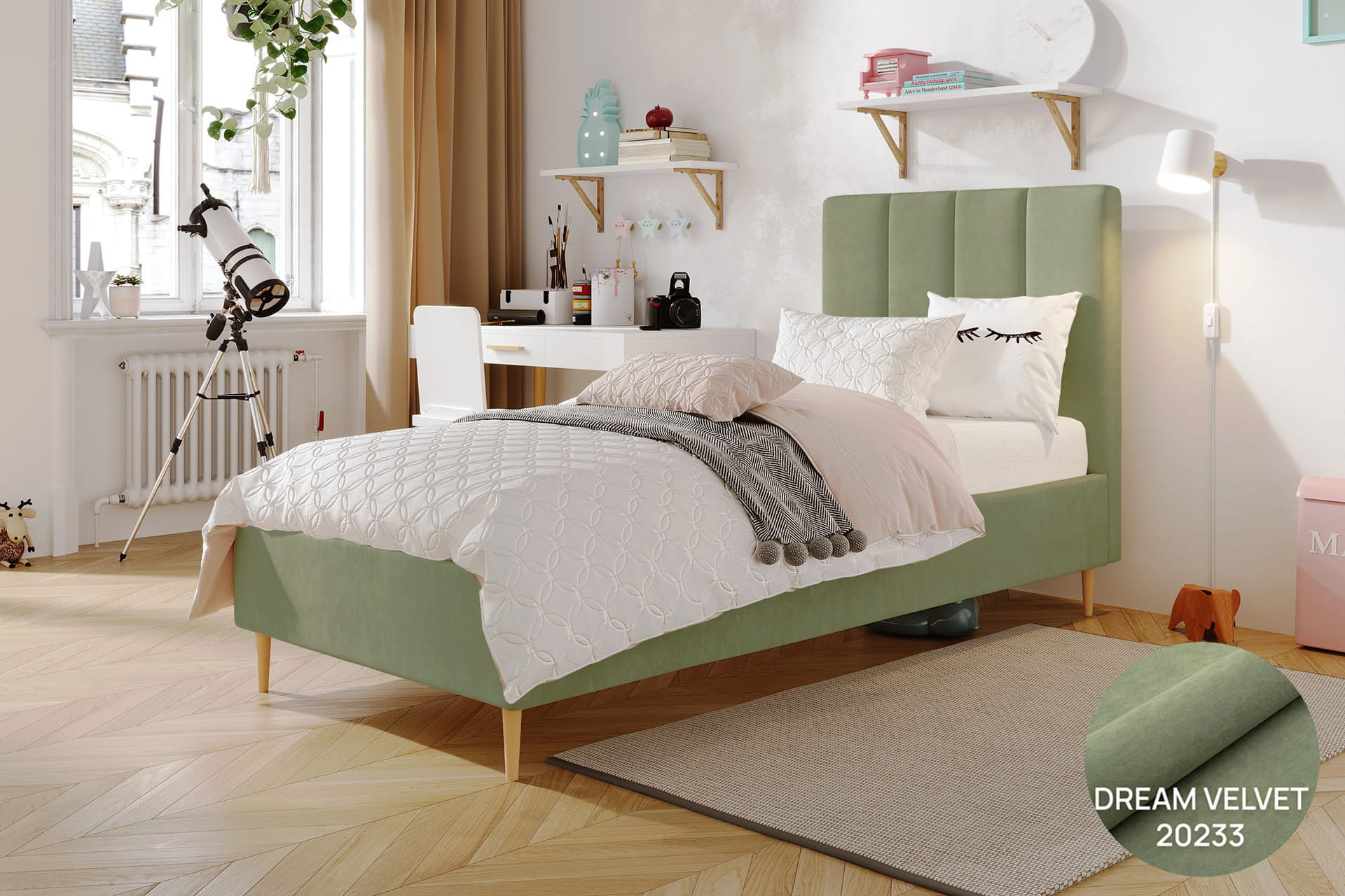 Jugendliche Eleganz in ihrer reinsten Form – so lässt sich das einzelne gepolsterte Bett Lola von MyBed beschreiben. Dieses klassische Modell auf dekorativen Beinen strahlt einen dezenten Charme aus, der jedes Kinderzimmer bereichert – und nicht nur das, sondern erleichtert auch die Reinigung Ihres Interieurs und eröffnet zuvor ungenutzten Stauraum. Das mit vertikalen Nähten verzierte Kopfteil verleiht Charakter und unterstreicht die Sorgfalt der Verarbeitung. Zudem garantiert die hohe Materialqualität Langlebigkeit und Komfort, und das recht universelle Design ermöglicht eine harmonische Anpassung an verschiedenste Raumgestaltungen. Komfort und Stil in einem? Lola ist die perfekte Wahl!