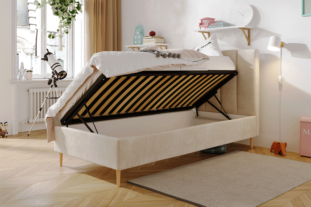 Der funktionale Bettwäscheaufbewahrungsraum in unseren Betten bietet zusätzlichen Stauraum. Ideal zum Verstauen von Bettwäsche, Kissen und anderen Gegenständen, hilft er, Ihr Schlafzimmer ordentlich zu halten. Hergestellt aus robusten Materialien, ist er leicht zu handhaben und bietet hohen Bedienkomfort.