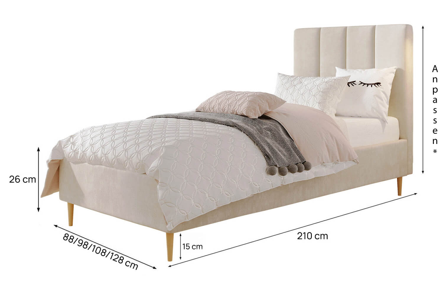Die angezeigten Maße können Sie ändern, indem Sie im Konfigurator eine andere Schlafoberfläche wählen