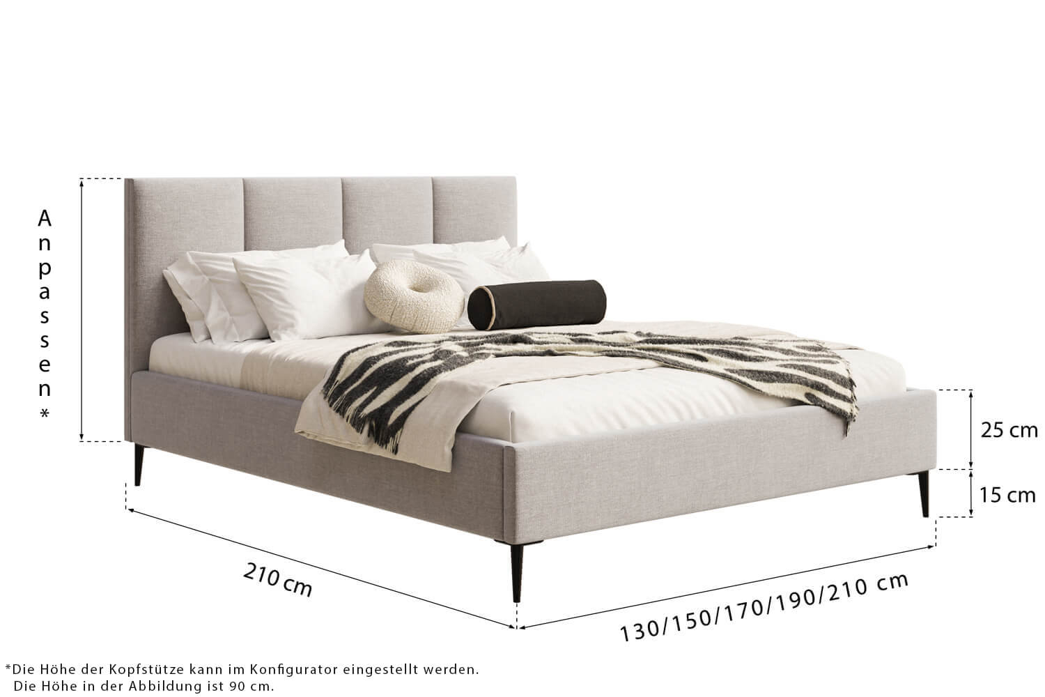 Die angezeigten Maße kannst du ändern, indem du im Konfigurator eine andere Schlafoberfläche auswählst