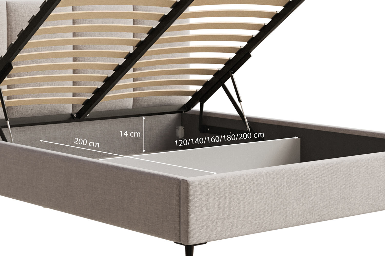 Der funktionale Bettwäscheaufbewahrungsbehälter in unseren Betten bietet zusätzlichen Stauraum. Ideal zur Aufbewahrung von Bettwäsche, Kissen und anderen Gegenständen, hilft er, Ordnung im Schlafzimmer zu halten. Hergestellt aus langlebigen Materialien, ist er einfach zu handhaben und bietet hohen Bedienkomfort.