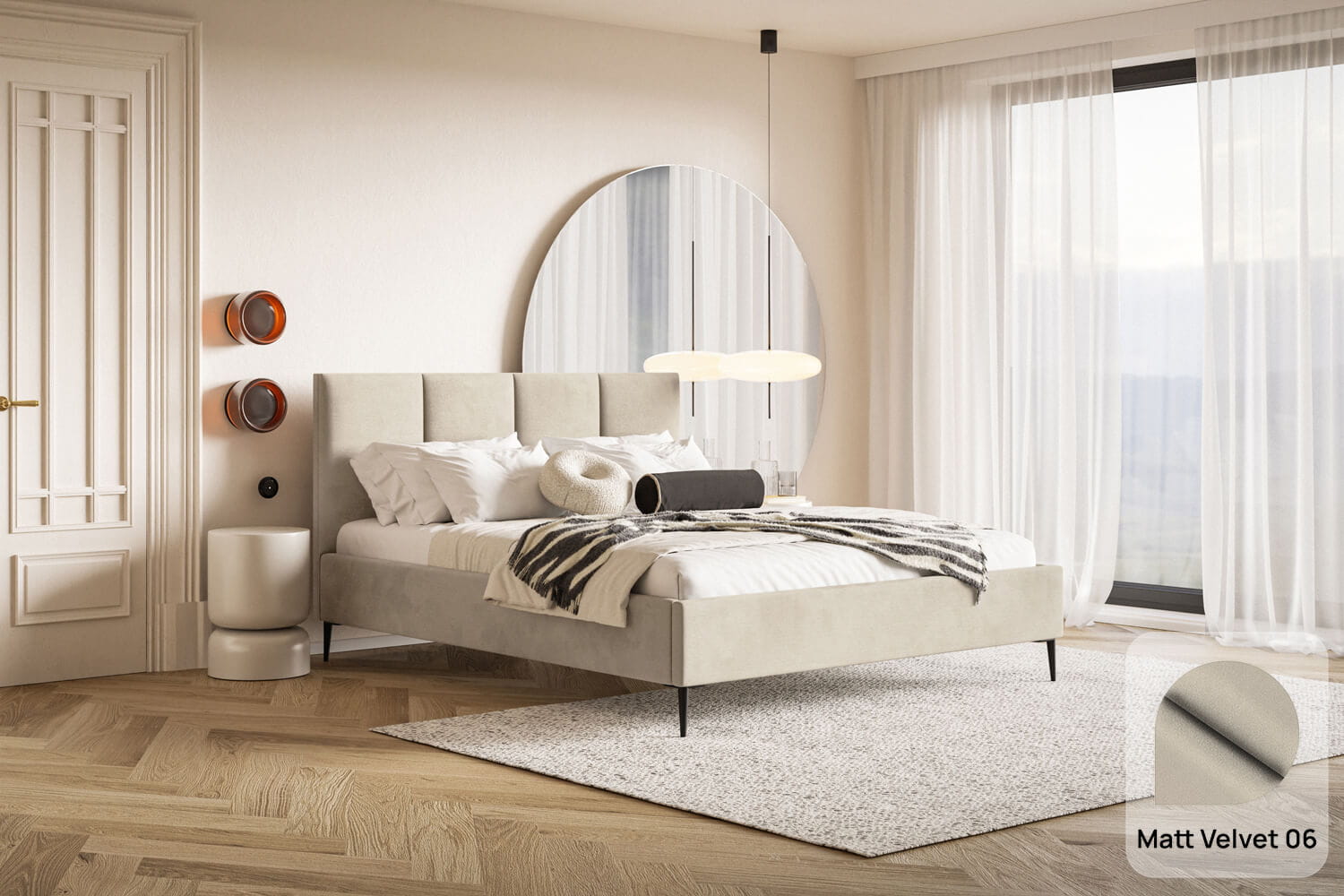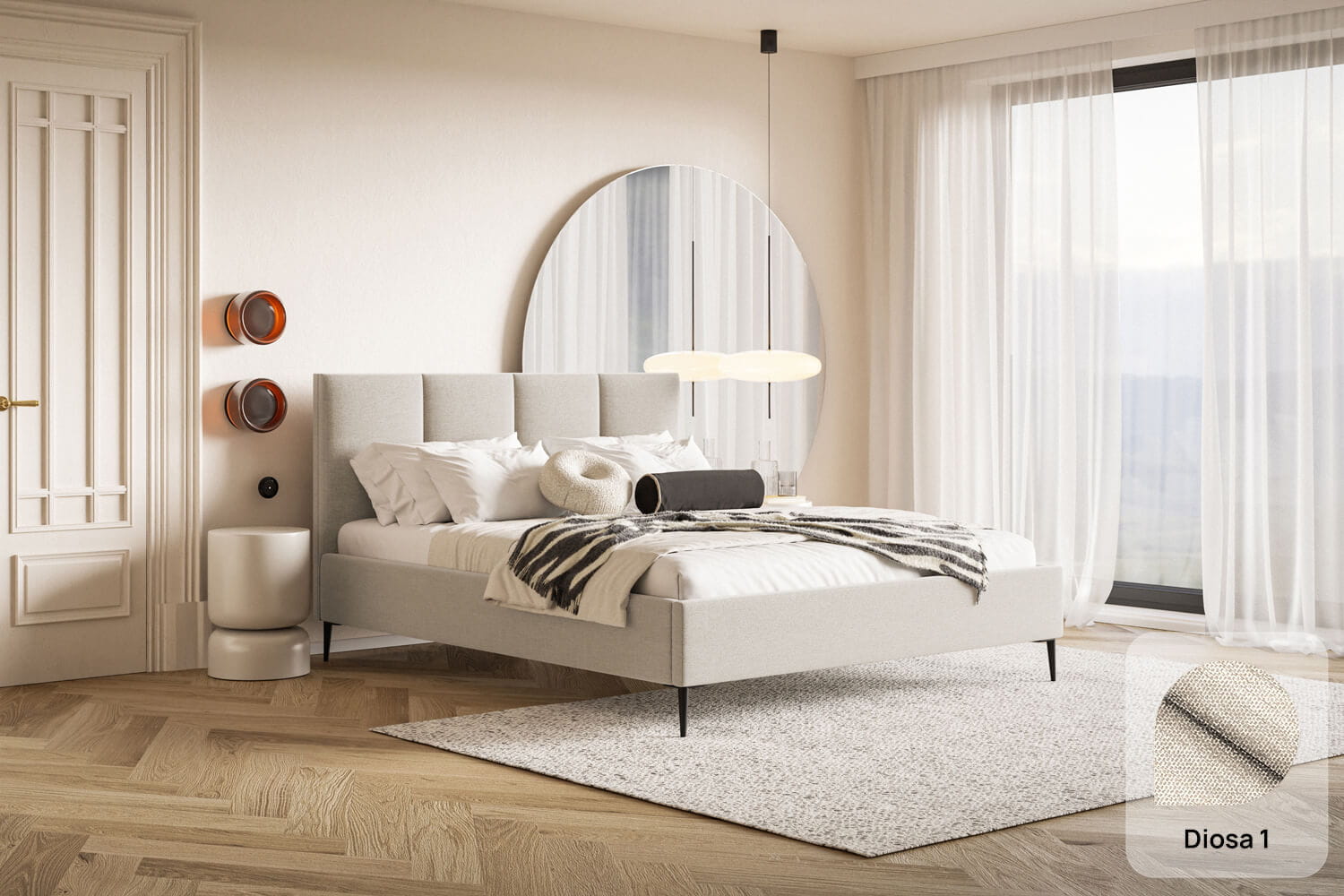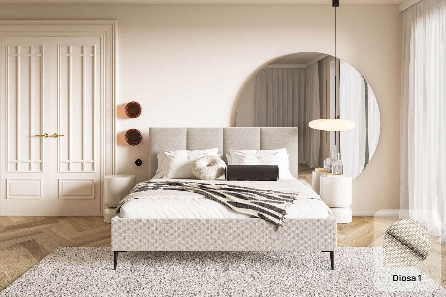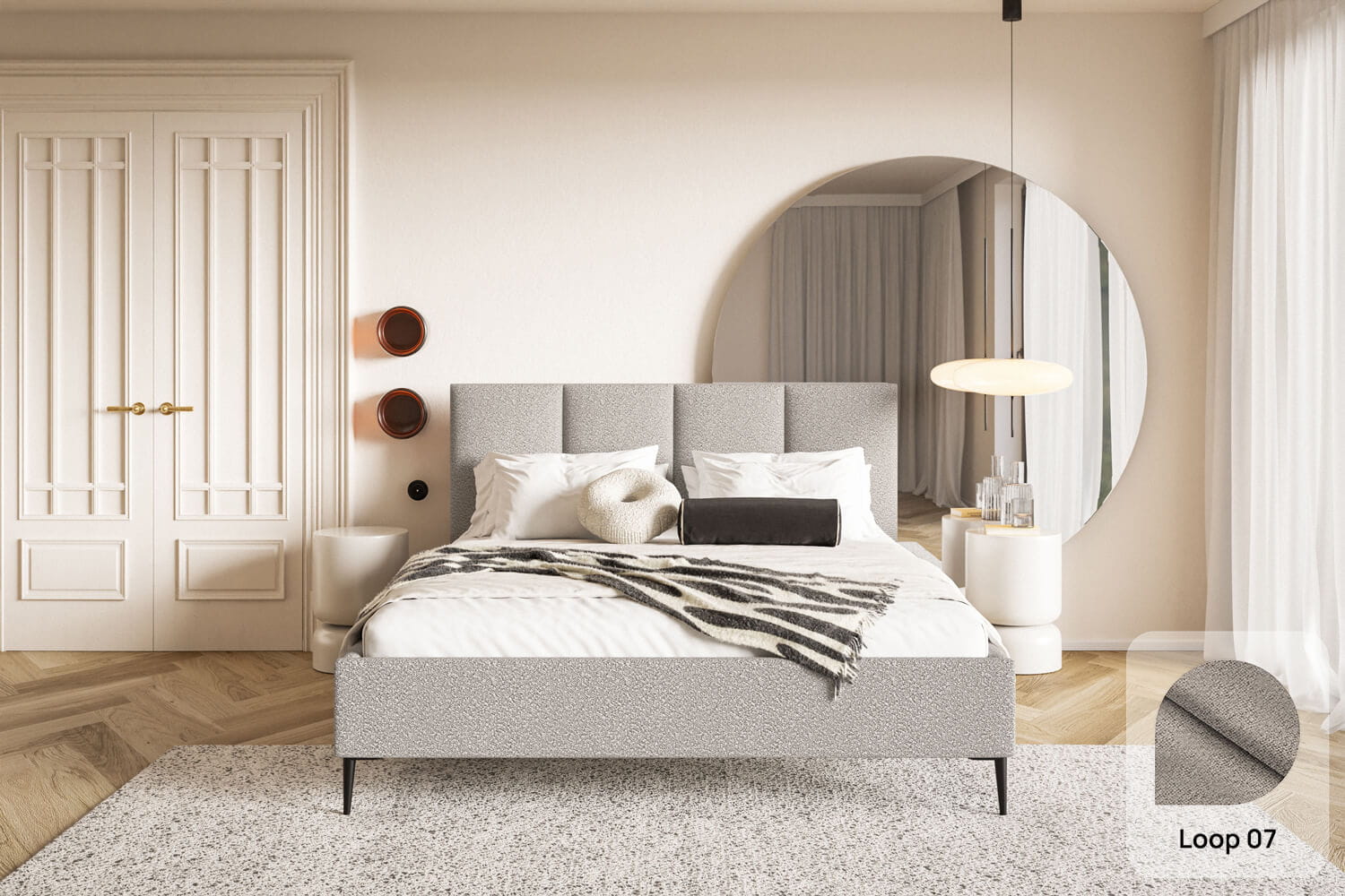 Das Bett Lucia ist ein hervorragender Vorschlag sowohl für moderne als auch klassische Interieurs. Die unverwechselbare Form und das Design ziehen alle Blicke auf sich und verleihen Charakter.