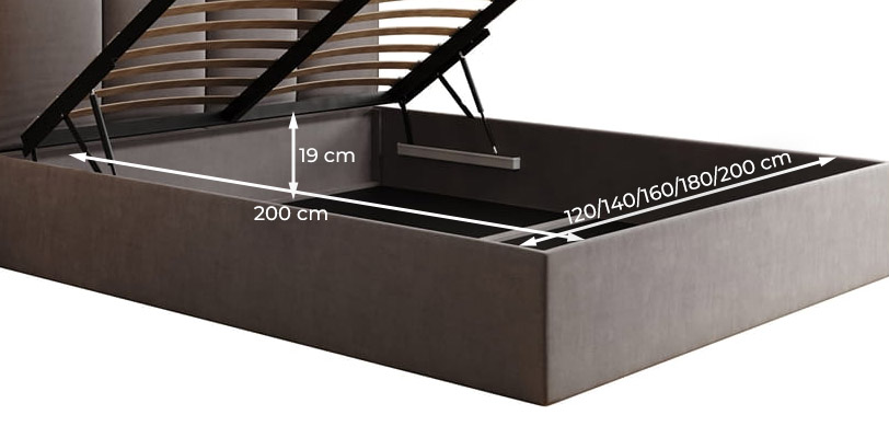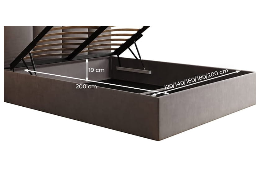 Der funktionale Bettwäscheaufbewahrungsbehälter in unseren Betten bietet zusätzlichen Stauraum. Ideal zur Aufbewahrung von Bettwäsche, Kissen und anderen Gegenständen, hilft er, Ordnung im Schlafzimmer zu halten. Hergestellt aus langlebigen Materialien, ist er einfach zu bedienen und bietet hohen Nutzungskomfort.