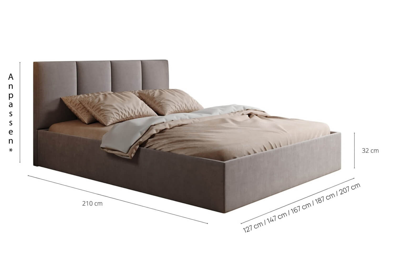 Gestalte ein Bett, das perfekt auf deine Bedürfnisse zugeschnitten ist. Wir bieten die Möglichkeit zur vollständigen Personalisierung – von der Auswahl der Größe, über den Typ des Polsterbezugs, bis hin zu zusätzlichen Funktionen wie einem Bettwäscheaufbewahrungsfach oder Kopfteil. So kannst du ein Bett entwerfen, das ideal zu deinem Interieur und Lebensstil passt.