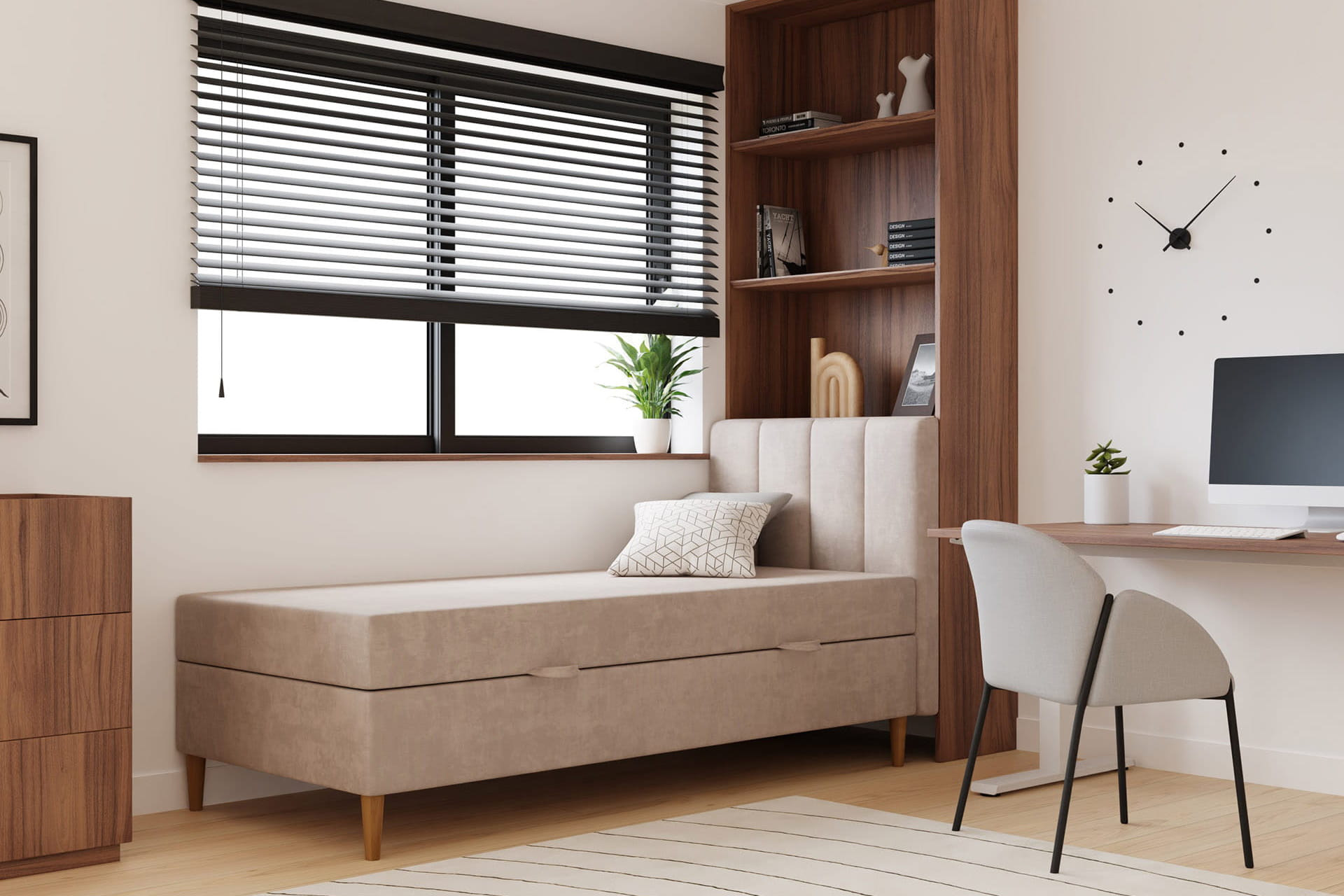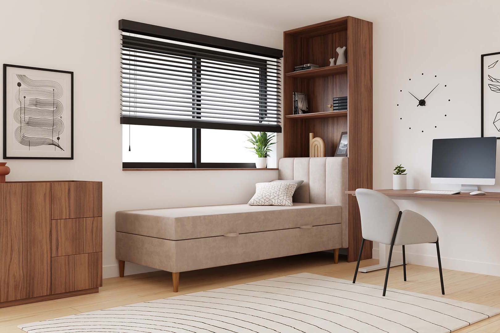 Der funktionale Bettkasten in unseren Betten bietet zusätzlichen Stauraum. Ideal zur Aufbewahrung von Bettwäsche, Kissen und anderen Gegenständen, hilft er, Ordnung im Schlafzimmer zu bewahren. Hergestellt aus langlebigen Materialien, ist er einfach zu bedienen und gewährleistet Komfort.