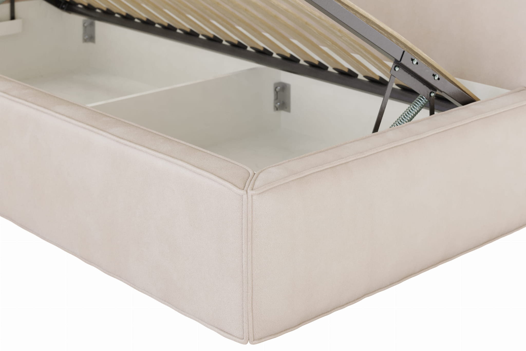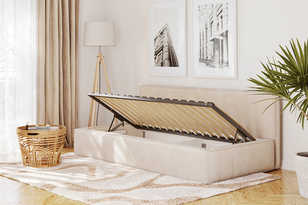 Der funktionale Bettwäscheaufbewahrungsraum in unseren Betten bietet zusätzlichen Platz zur Aufbewahrung. Ideal zum Verstauen von Bettwäsche, Kissen und weiteren Gegenständen, hilft er dabei, Ihr Schlafzimmer ordentlich zu halten. Hergestellt aus robusten Materialien, ist er leicht zu handhaben und bietet hohen Komfort.