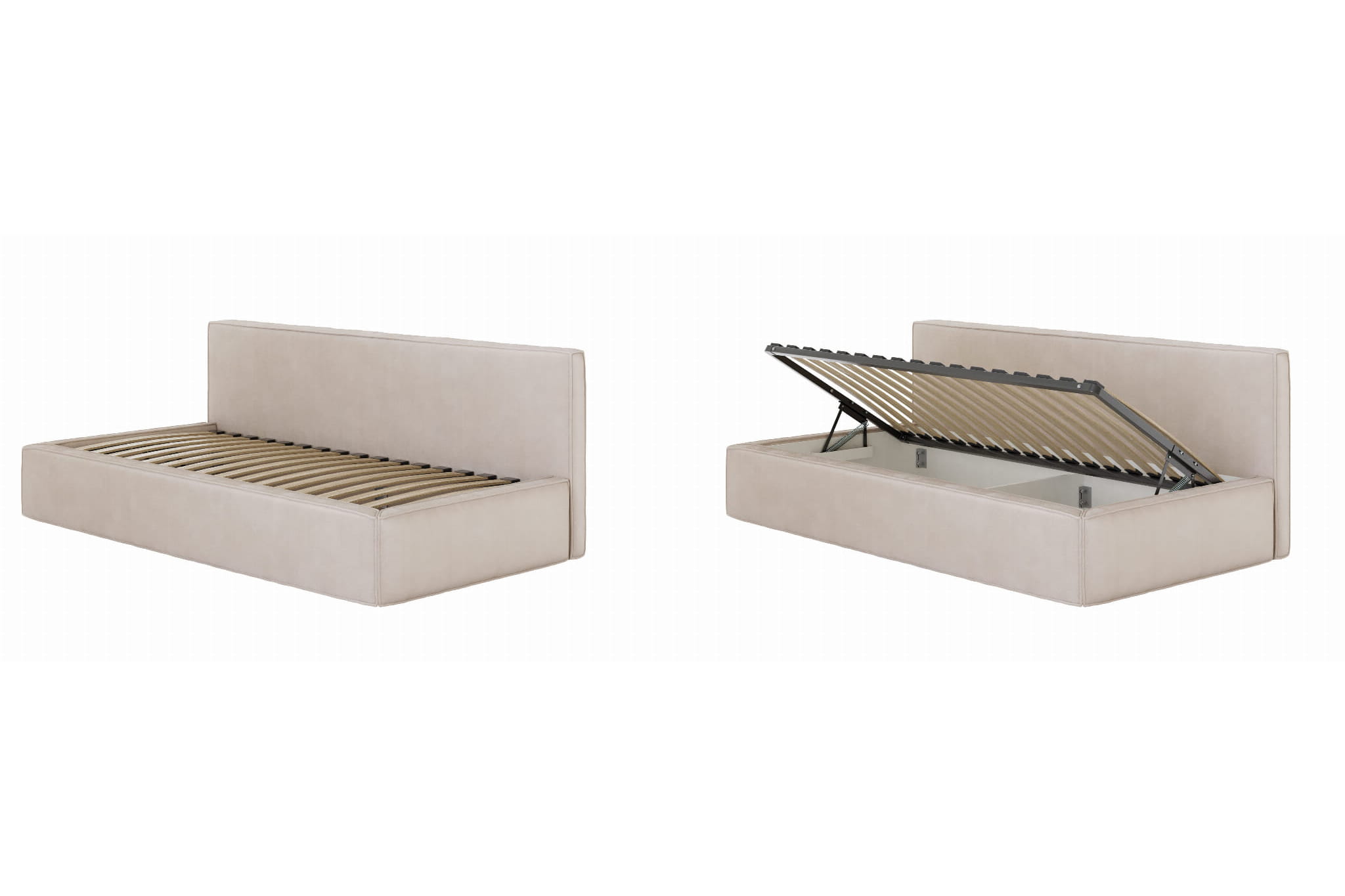 Version mit Bettwäschefach, das von der Seite geöffnet wird