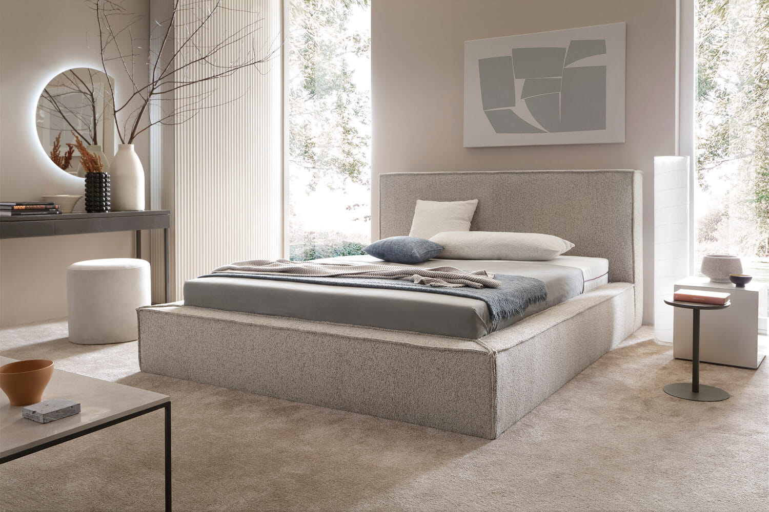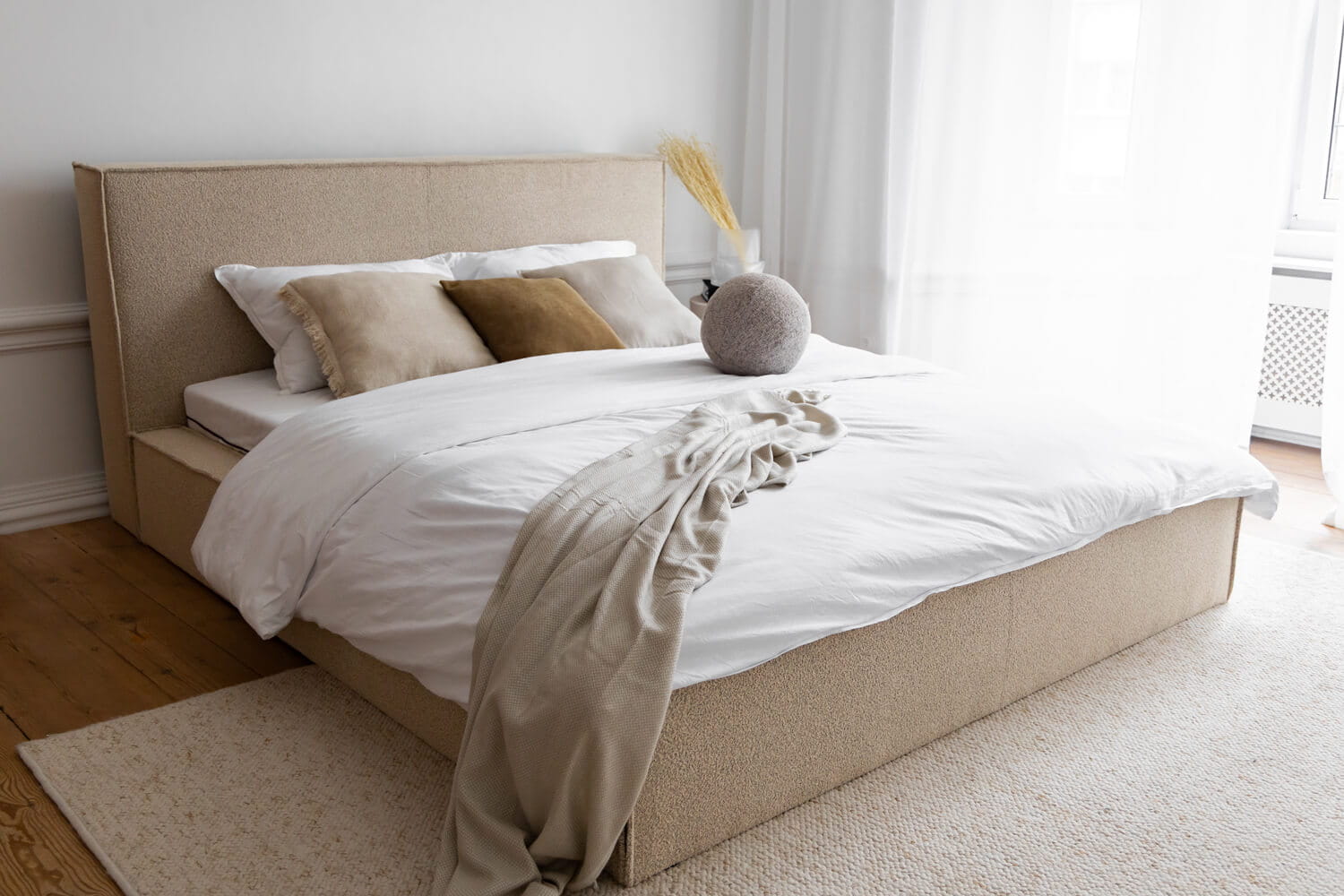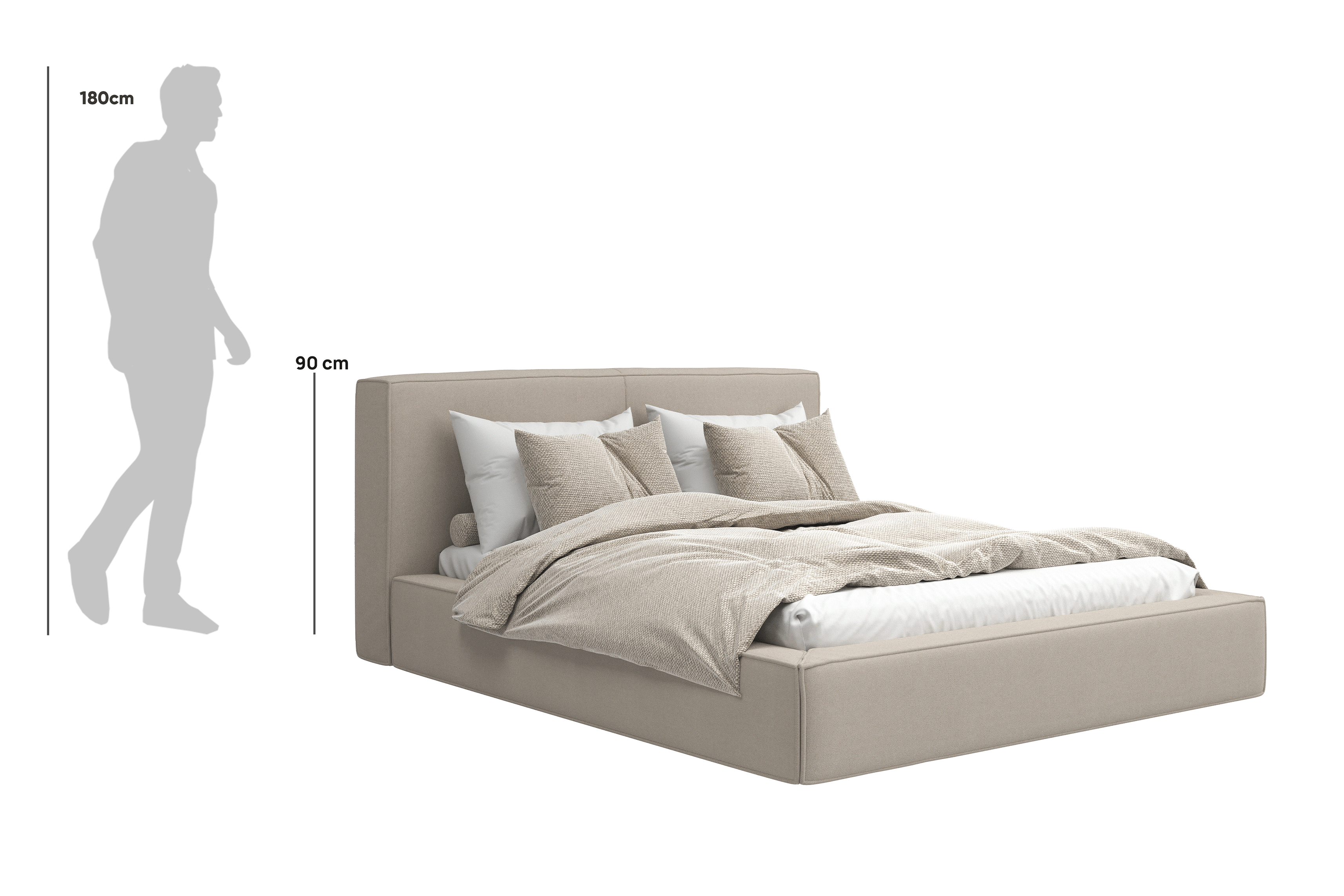Gestalte dein Bett perfekt nach deinen Bedürfnissen. Wir bieten die Möglichkeit einer vollständigen Personalisierung – von der Größenwahl über die Auswahl des Bezugsstoffs bis hin zu zusätzlichen Funktionen wie einem Bettwäschebehälter oder einem Kopfteil. So kannst du ein Bett entwerfen, das ideal zu deinem Interieur und Lebensstil passt.