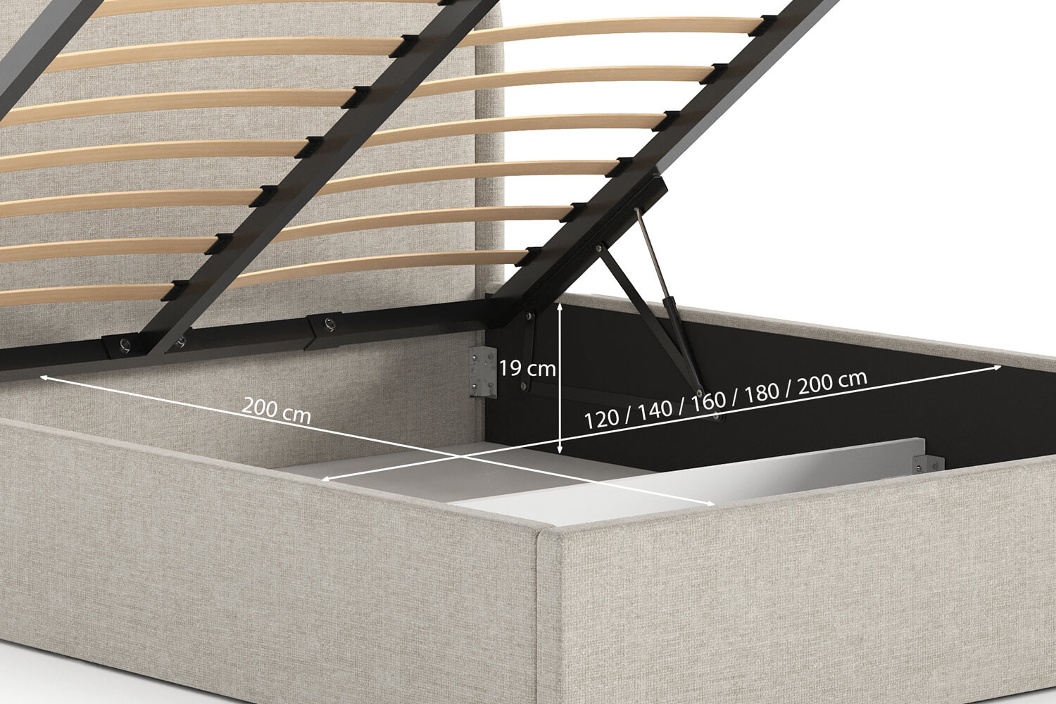 Der funktionale Bettkasten unserer Betten bietet zusätzlichen Stauraum. Perfekt zur Aufbewahrung von Bettwäsche, Kissen und anderen Gegenständen – sorgt für Ordnung im Schlafzimmer. Hergestellt aus langlebigen Materialien, einfach zu bedienen und bequem im Gebrauch.